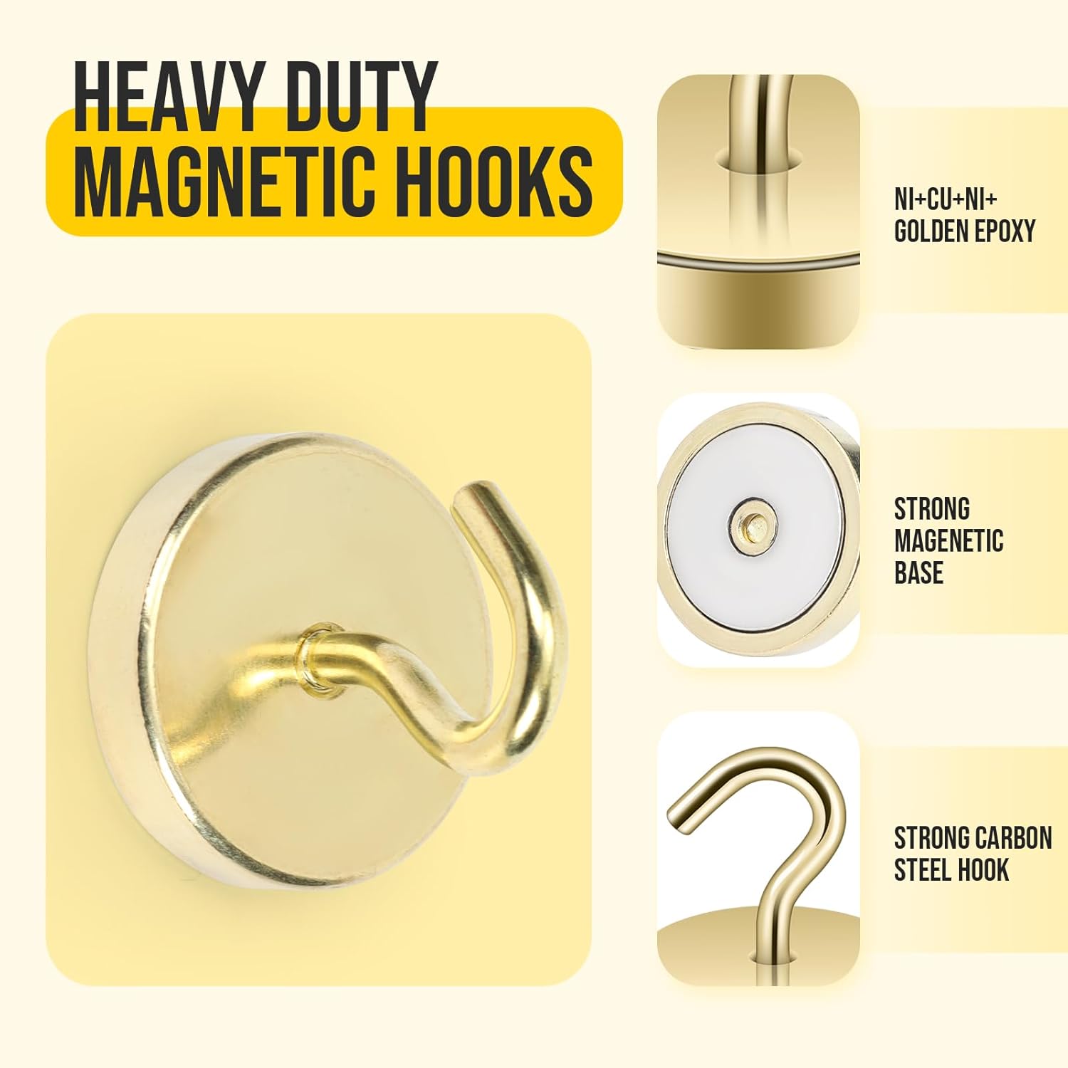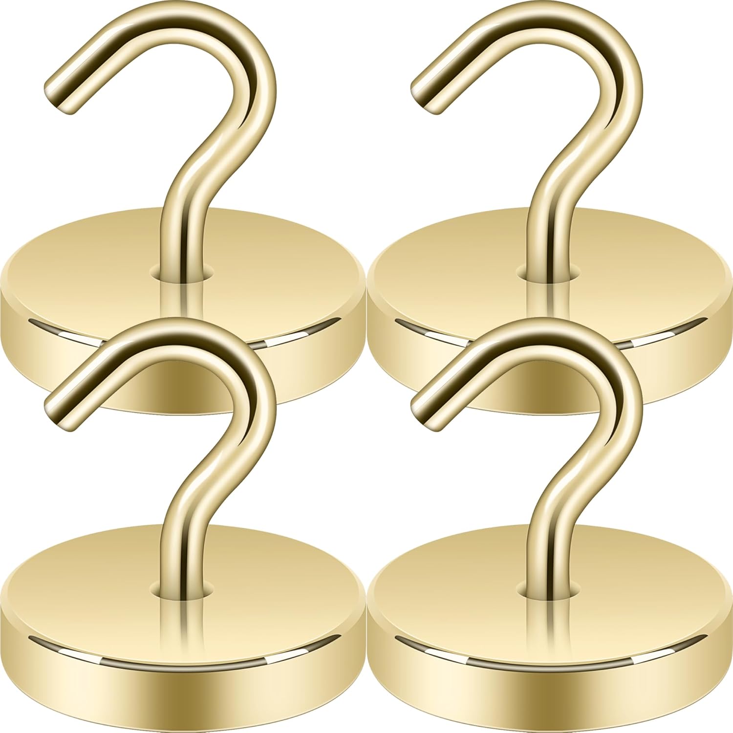 Neosmuk Magnetic Hooks, Heavy Duty 170lb Strong Magnets for Cruise Cabins, Ship Essentials, Large Metal Hooks for Hanging on Fridge(Gold,Pack of 4)