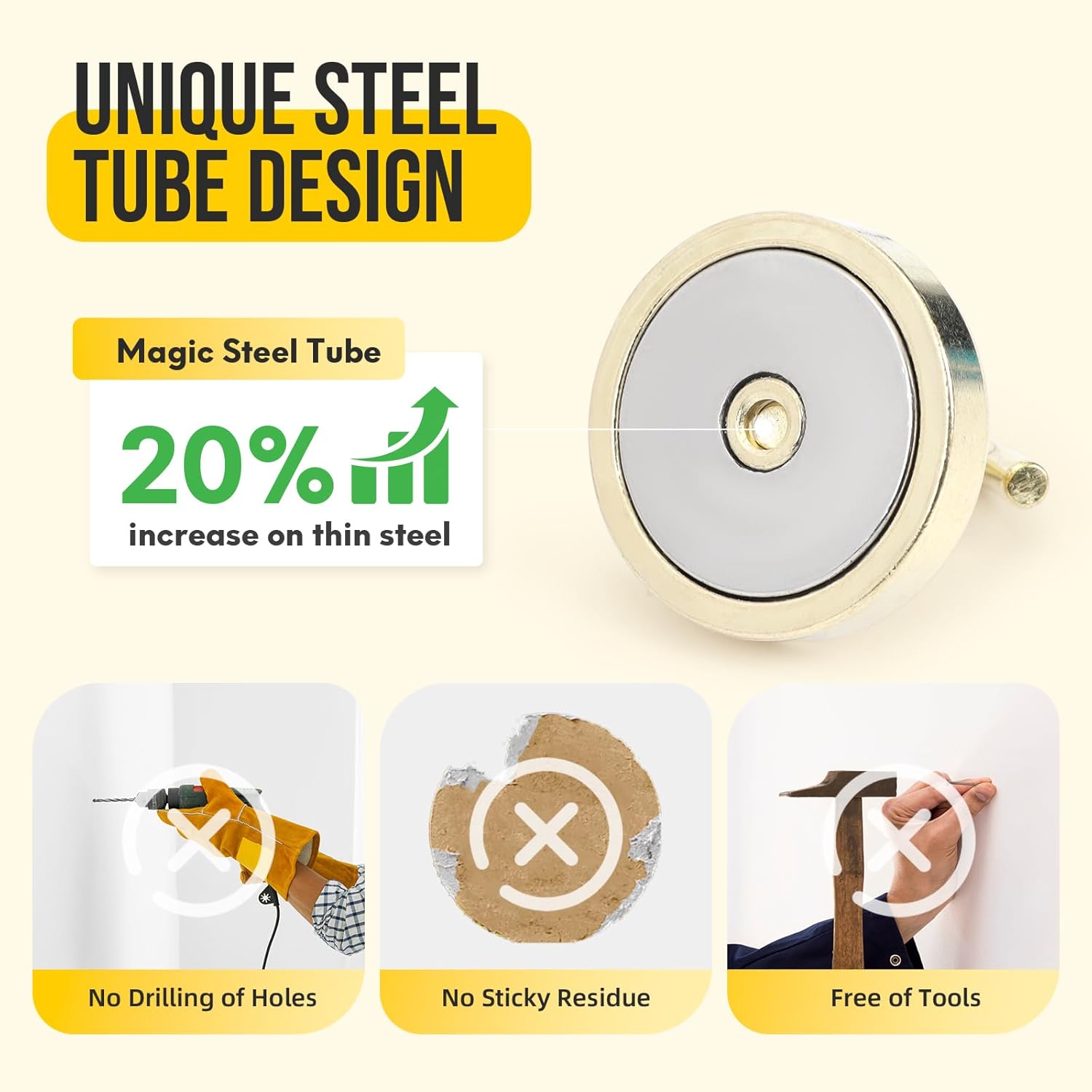 - SUPER POWERFUL MAGNETIC HOOKS FOR HEAVY-DUTY USE-Experience unmatched strength with Neosmuk magnetic hooks. With a 1.42-inch CNC-machined steel base and high-grade neodymium magnets, each hook delivers up to 170lb of holding power on a 0.39-inch iron plate. These heavy-duty magnet hooks are perfect for cruise cabins, ship walls, lockers, or any metal surface. Reliable and durable, these hooks are designed for your toughest jobs!