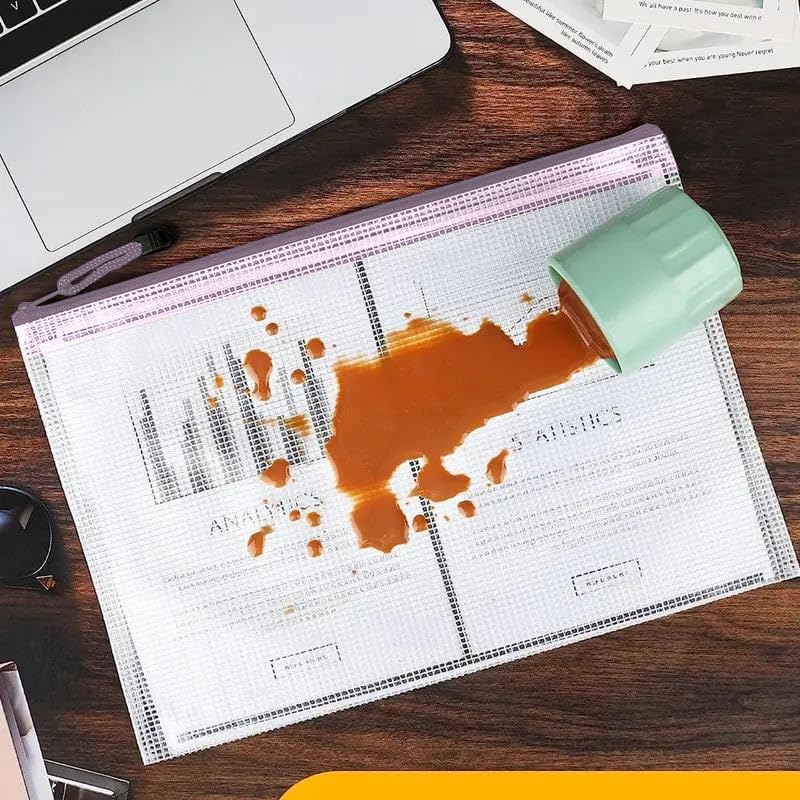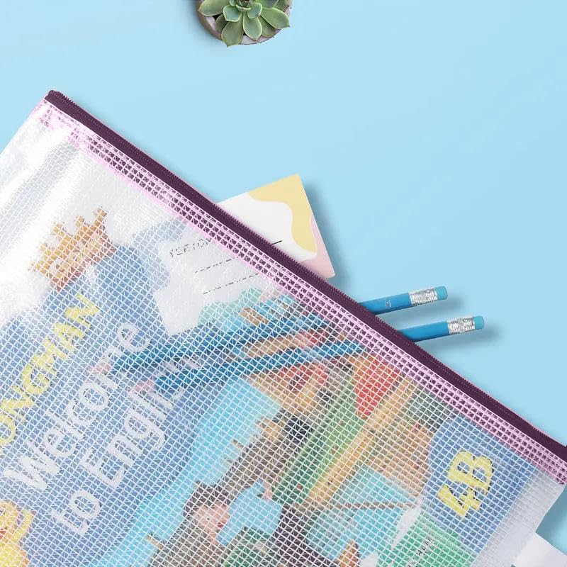 - QUALITY PVC: The mesh bag with zipper is made of PVC, safe and thick mesh, waterproof and moisture-proof. Protect your files from moisture, keep them flat and clear. Smooth metal zipper, strong and sturdy