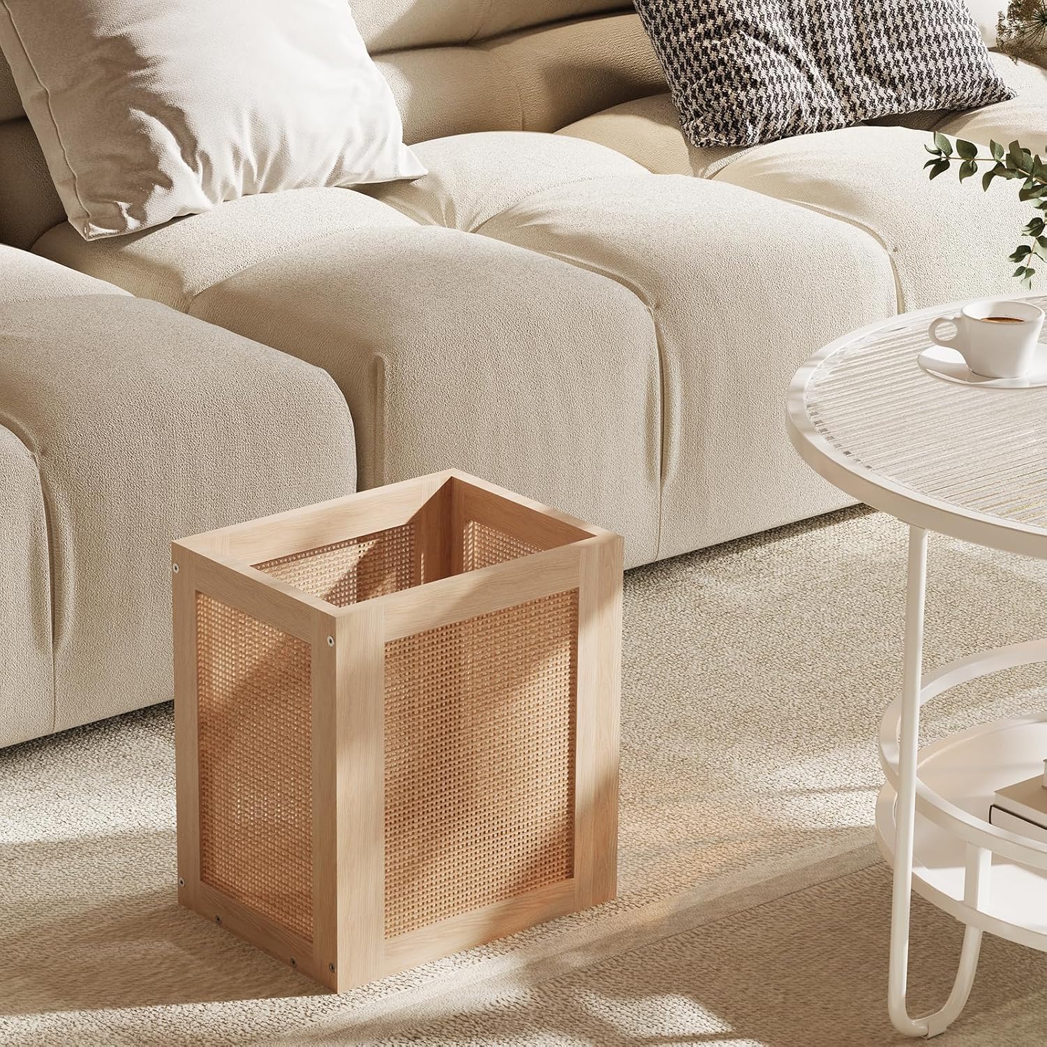 - 【Easy to Clean and Maintain】The small trash can surface is smooth, waterproof and stain-resistant. The wooden part has been specially treated to be moisture-proof and moth-proof, and it remains as new after long-term use.
