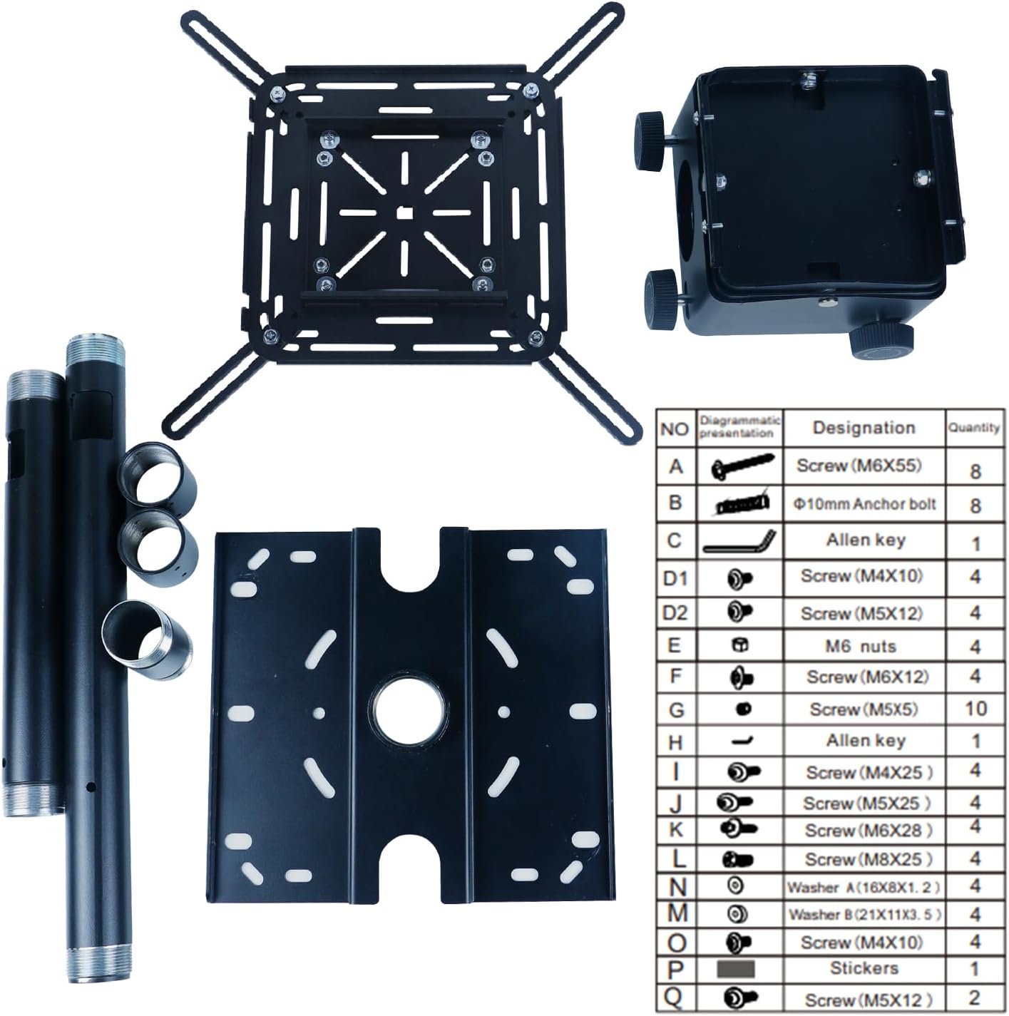- 【Professional Equipment】Projector ceiling mount is made of high-quality aluminum and iron material, corrosion-resistant; size: 527mm*306mm*230mm, telescopic length can reach 150mm-1040mm, and at the same time, it has the characteristics of high load-bearing, high precision and high adjustment sensitivity, so that you can quickly find the best projection position and get the ideal projection effect.