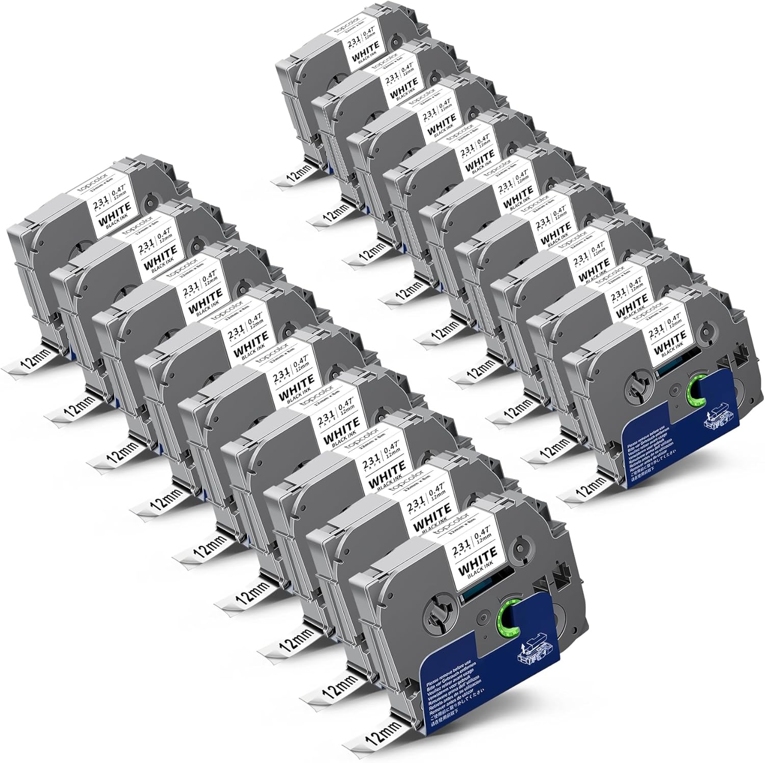 20-Pack 12mm 0.47 Laminated White Tape Tz231 Compatible for Brother Tze-231 P Touch Tze Tz Label Tape Refills Tze231 for PTH110 PTD220 PTD210 PTH103W PTD400 PT1280 PT1290 PT2040 Label Maker