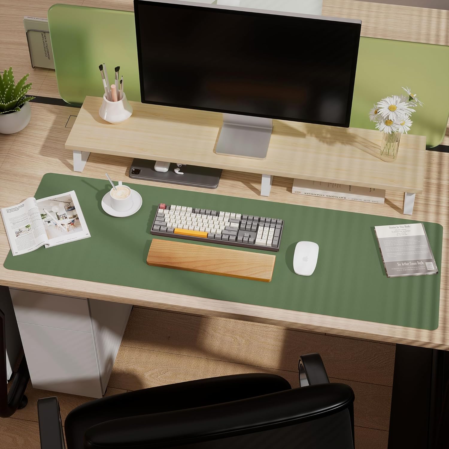 Aothia Leather Desk Pad Protector, Office Desk Mat, Large Mouse Pad, Laptop Desk Pad, Non-Slip PU Leather Desk Blotter, Waterproof Desk Writing Pad for Office and Home (Olive Green, 47" x 17")