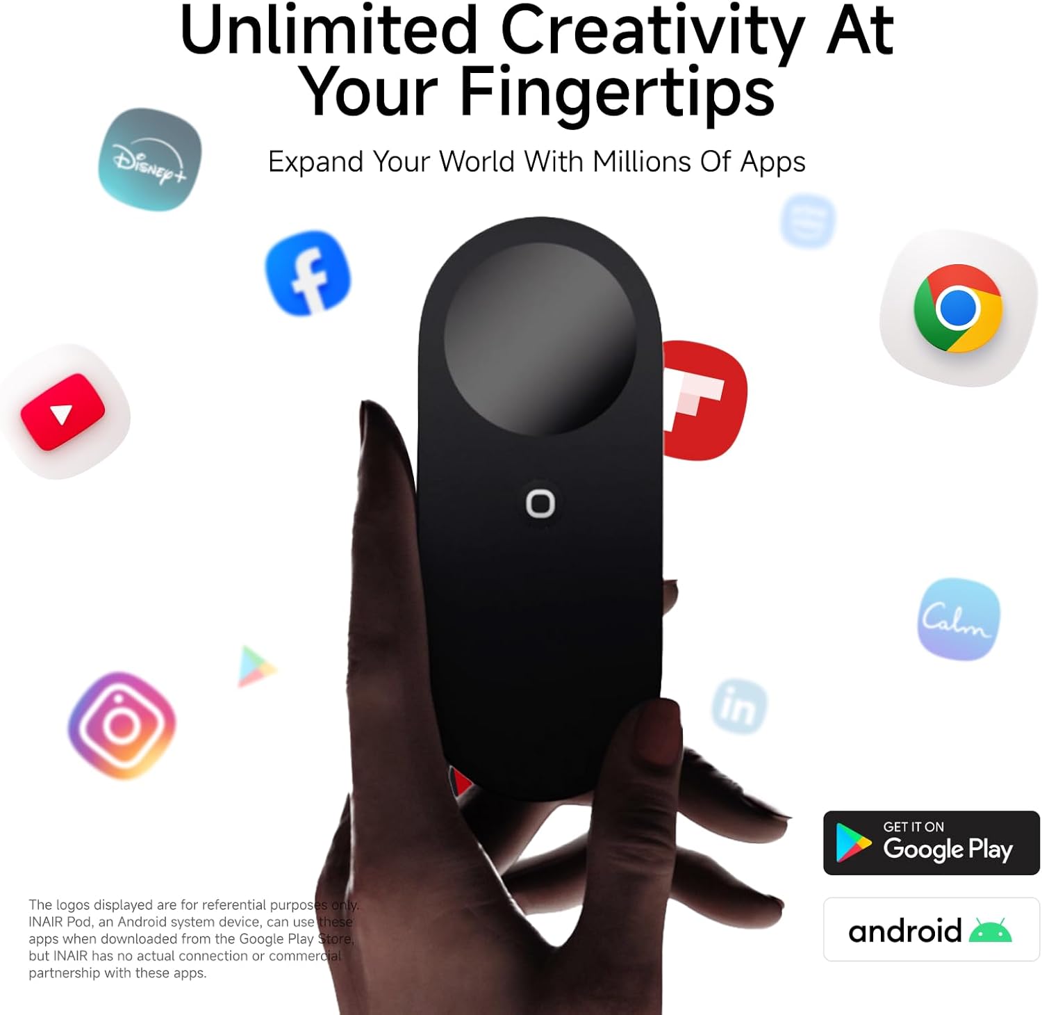 - Multi-Screen Control, AI Integration, and Wireless Use: INAIR Pod supports multiple apps running simultaneously on the INAIR 2 Pro spatial display. It allows wireless PC streaming to expand entertainment options and integrates advanced AI models for simple, intelligent interaction.