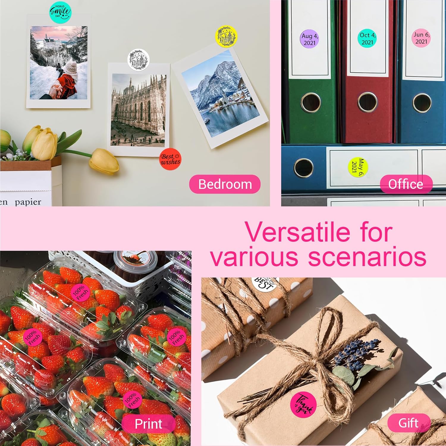 - What You Will Get: Each roll contains 1000 pieces of 1 inch round thermal labels. These color-coding sticker dots are easy to peel off and apply to various surfaces. Fluorescent pink color round stickers are suitable for home sorting, office organization, business displays, etc