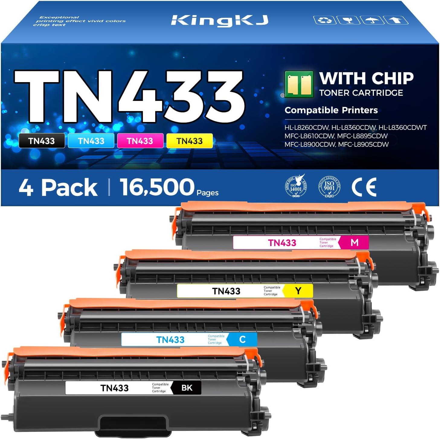 - What You Get: 4-Pack of TN433 Toner Cartridges (1*Black 1*Cyan 1*Magenta 1*Yellow).