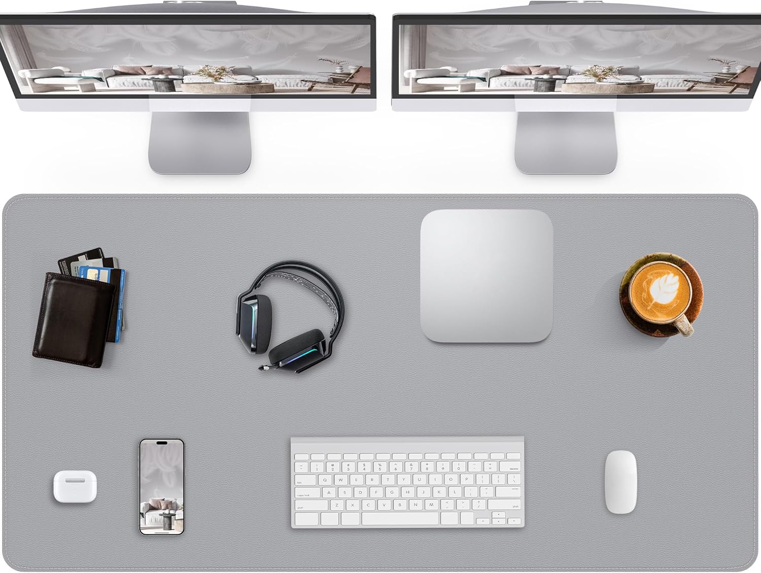 Large Desk Pad Mat - Waterproof Mouse Pad & Desk Protector, Non-Slip XL PU Leather Gaming Mat for Keyboard/Mouse, Stitched Edge with Ergonomic Support, 47"x17" (Light Grey)