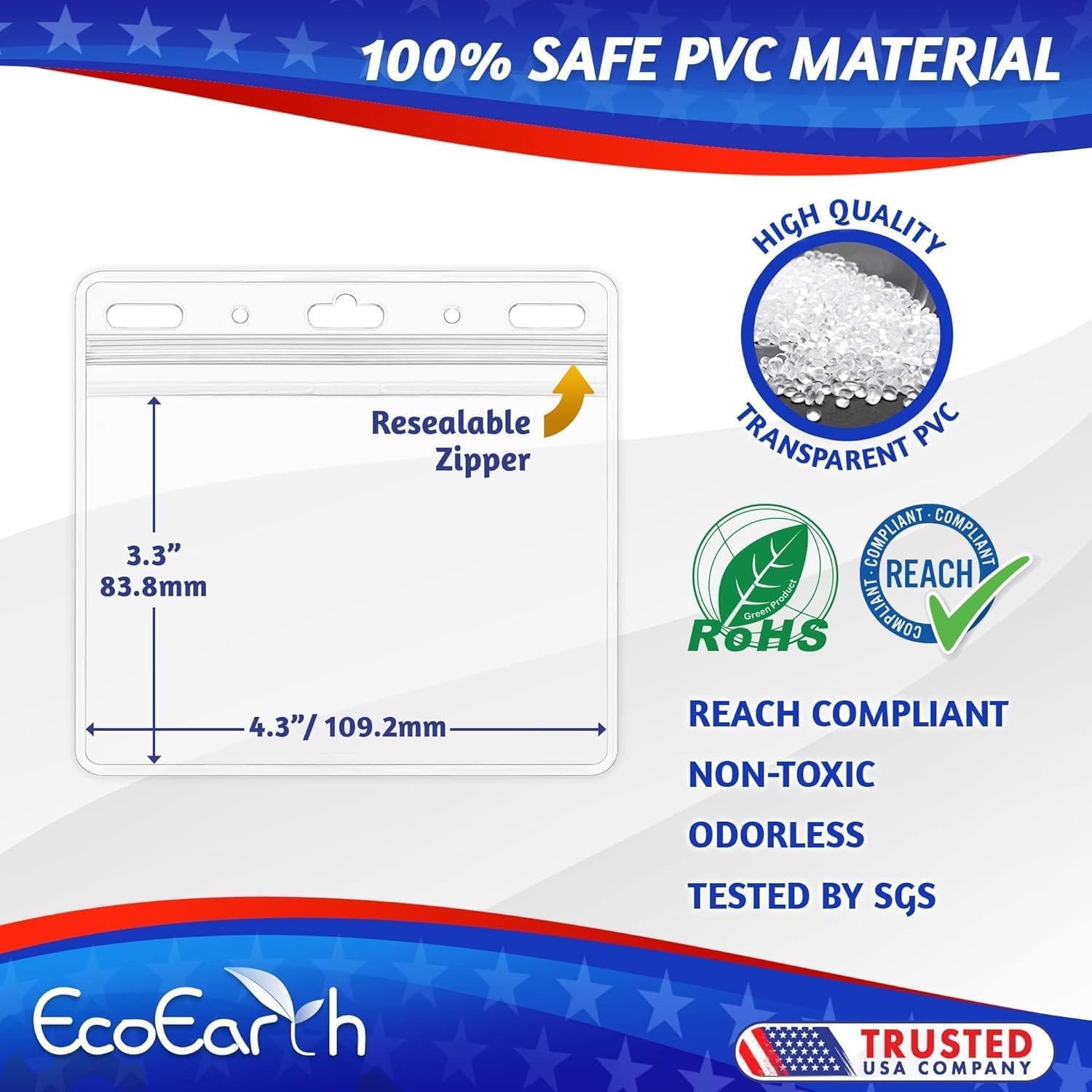 EcoEarth - Horizontal PVC Card Protector with Metal Clips and Vinyl Straps with Soft Edge - Sealable Fits 4x3 inch Inserts - Clear, 25 Pack - Waterproof ID Holder Bulk - ID Card Holder