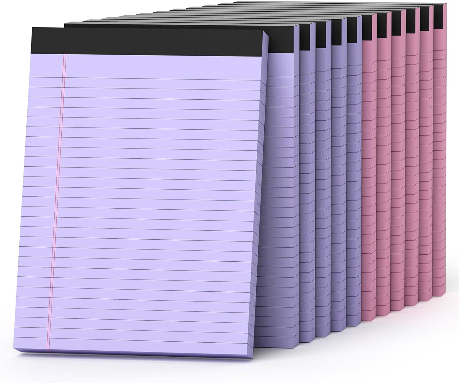 Purple Legal Pads 8.5 x 11, Notepads 8.5 x 11, Wide Ruled, 12 Pack Pink Note Pads 8.5 x 11, Pink Paper 8.5 x 11, Legal Size Paper, 30 Sheet/Notepad, Lined Paper, Writing Pads for Study, Office, Home