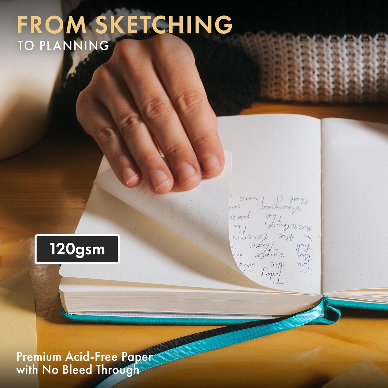 Wordsworth & Black A5 Bullet Dotted Journal 216 Dotted Pages, Hardcover Grid Dot Leather, 120 GSM Paper,Journaling Notebook for Work & Sketching,Journals for Women,Men-Gifts Box Included Turquoise