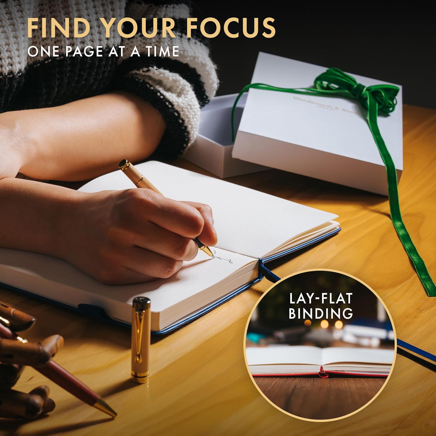 Wordsworth & Black A5 Bullet Dotted Journal 216 Dotted Pages, Hardcover Grid Dot Leather, 120 GSM Paper, Journaling Notebook for Work & Sketching, Journals for Women, Men - Gifts Box Included Blue