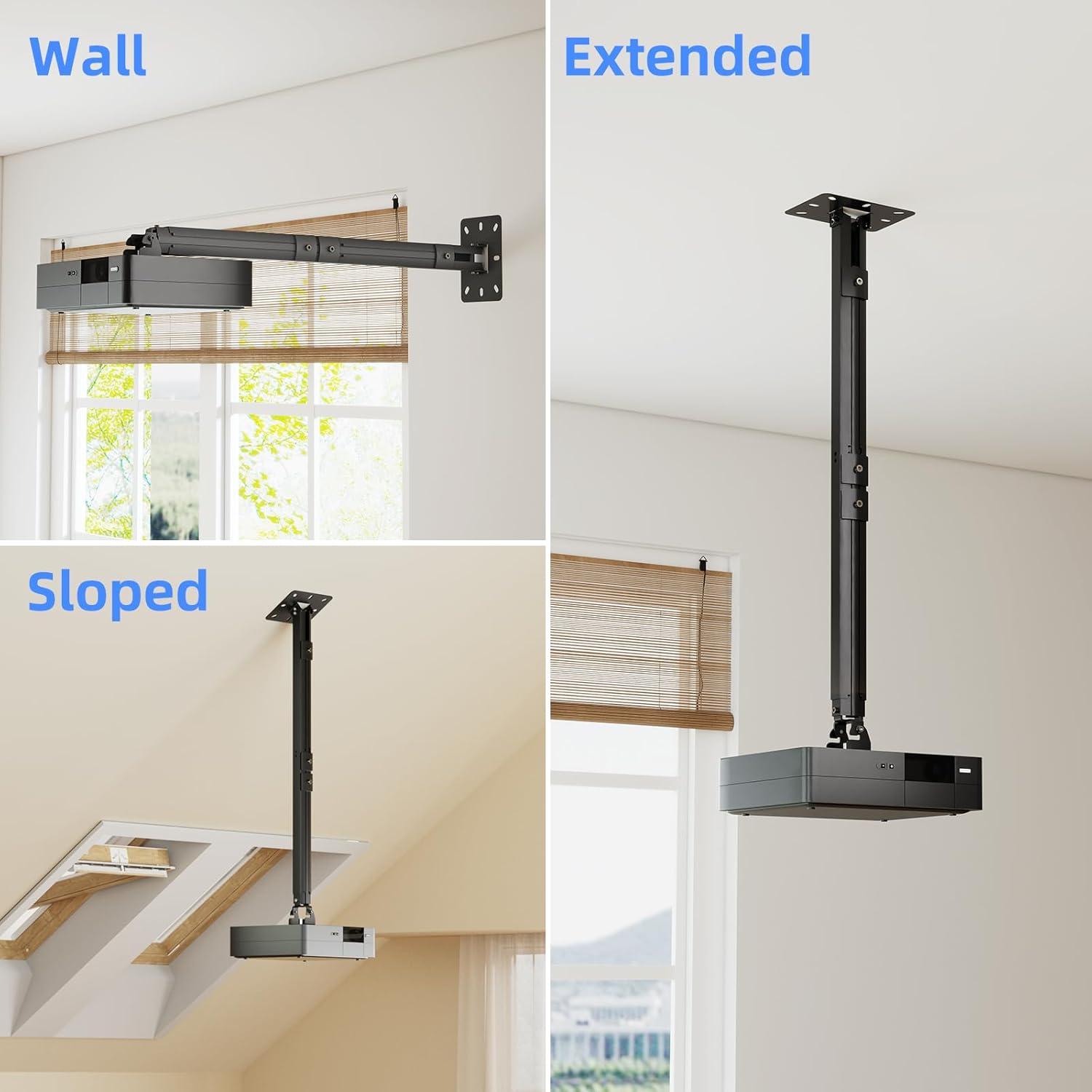 - 3-In-1 Projector Ceiling Mount Bracket - ceiling installation, sloped ceiling installation, and wall installation