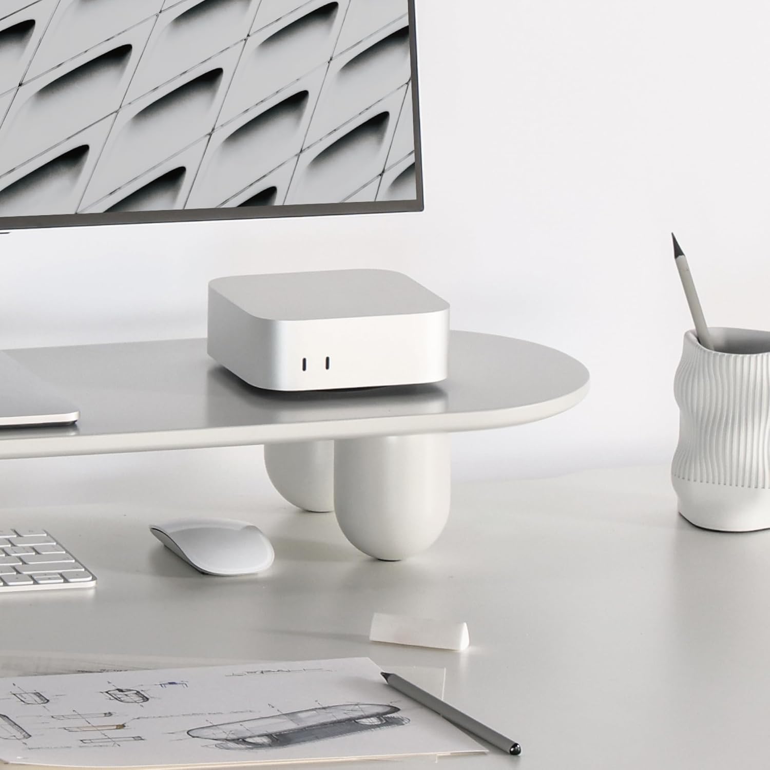 - 【Streamlined Aesthetic】Featuring rounded legs and a smooth oval panel, the Fenge monitor stand delivers minimalist elegance. Its cohesive white match seamlessly integrates into modern offices, gaming setups, or creative spaces.