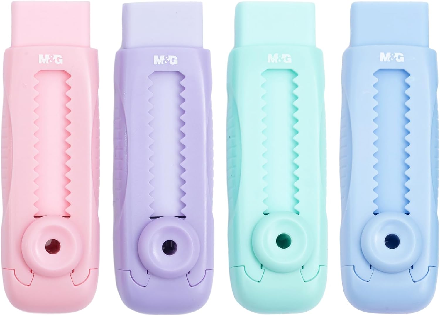 M&G 4 Pcs Cute Erasers for Kids Sliding Retractable Pencil Erasers, Push Pull Design Cute Erasers Stationery Supplies for Kids Back to School Supplies for Office
