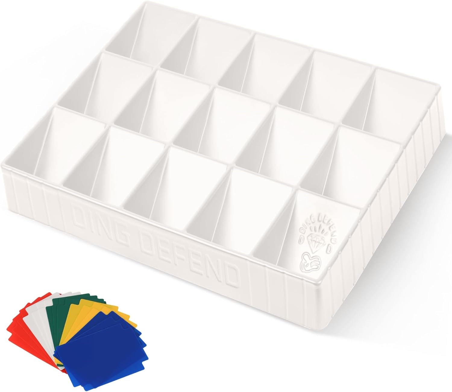 Card Sorting Tray - Stackable Trading Cards Organizer, 15-Compartment Sorter Tray for Organizing Raw Cards, Sleeved Cards or Toploaders– Includes 15 Trading Card Dividers, White