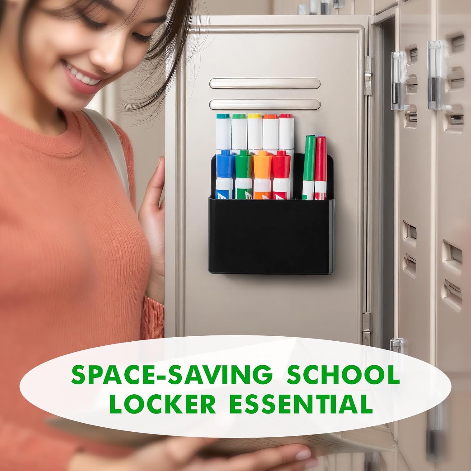 2 Pcs Magnetic Dry Erase Marker Holder for Whiteboard, Plastic Magnetic Pen Holder for Refrigerator Fridge, Magnet Pencil Cup for School Classroom, Locker Accessories, Pen Cup Organizer-Black
