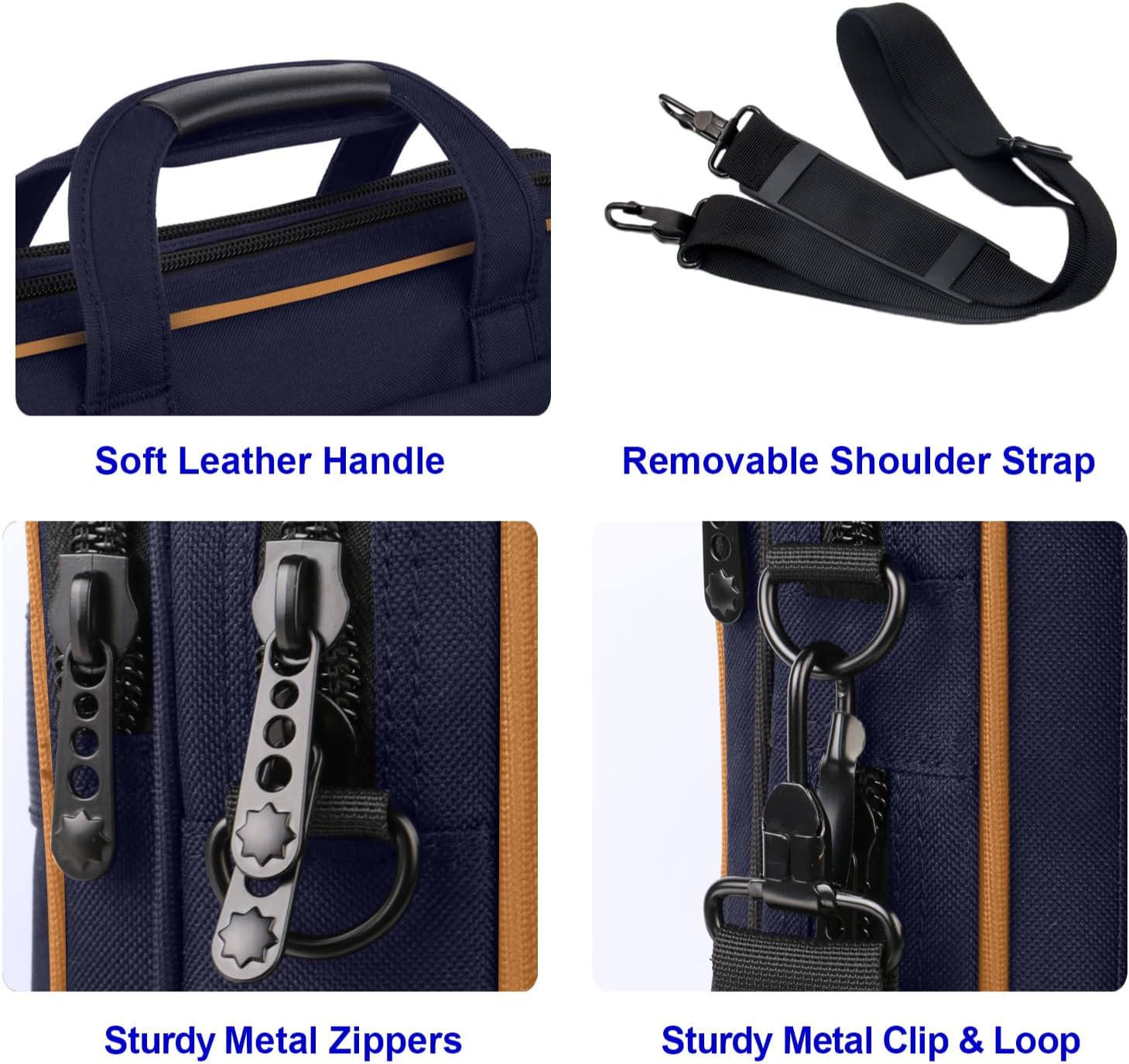 - Comfortable Carry & Travel Ready:Equipped with an adjustable padded PU shoulder strap and dual wrapped bale handles, this laptop briefcase provides comfort for daily use. A back luggage strap allows easy attachment to rolling suitcases, making it suitable for business travel or commuting