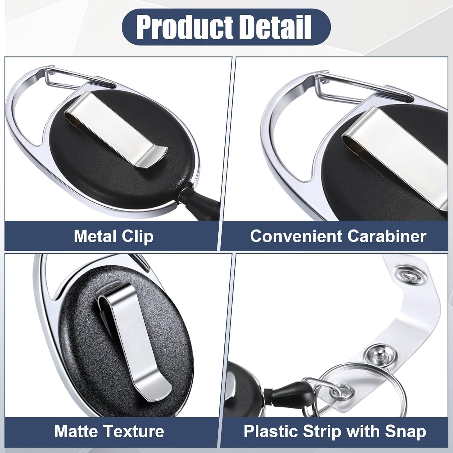- Durable Material: the badge reel is chromed metal housing with quality plastic covers, matte texture plastic round reel case and fiber cord was made of wear resistant polyester material that is compact and sturdy, retraction force up to 4 oz/ 113 g