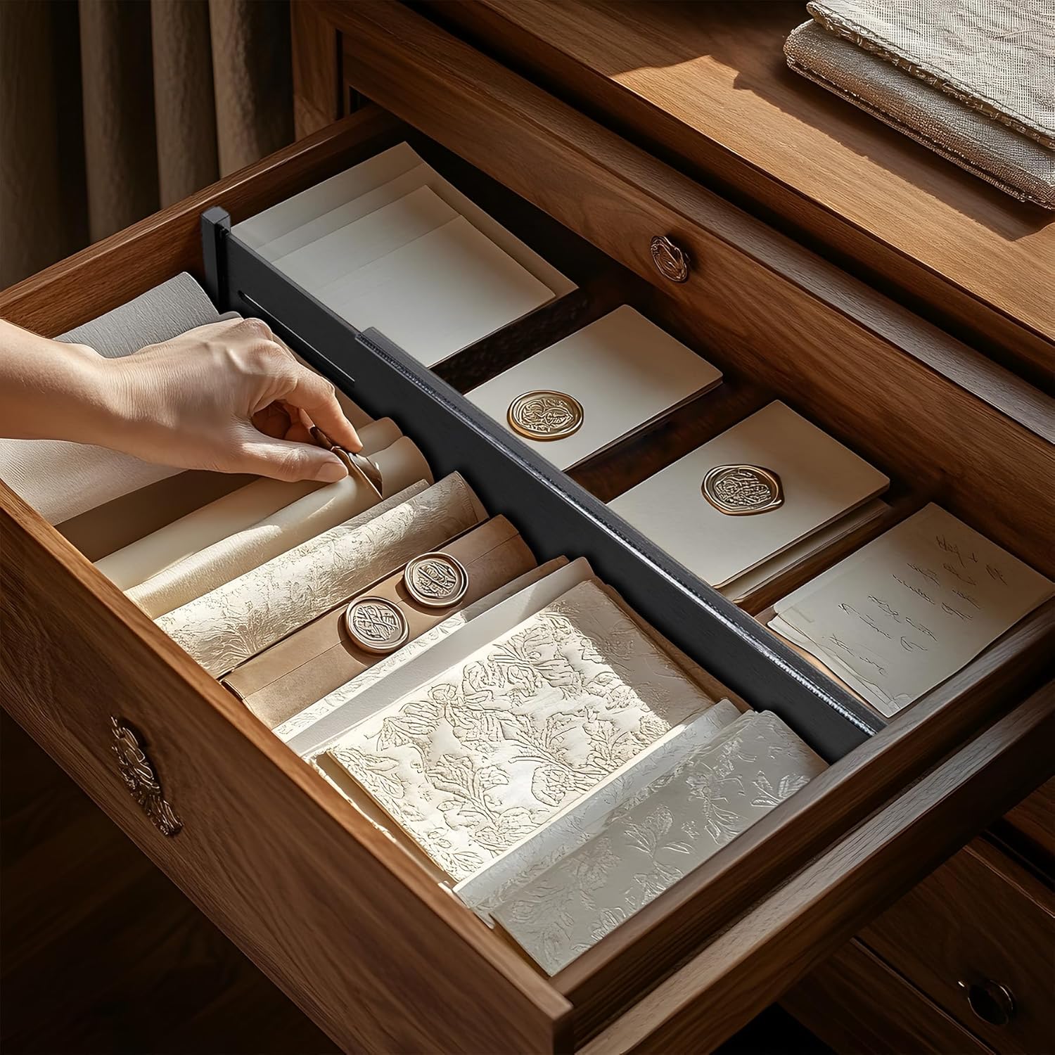 - Easy Installation & Removal: The expandable drawer divider features a built-in spring that keeps it securely in place. It's easy to adjust, so you can customize it to fit your changing needs. Ideal for sturdy drawers, ensuring your items stay organized