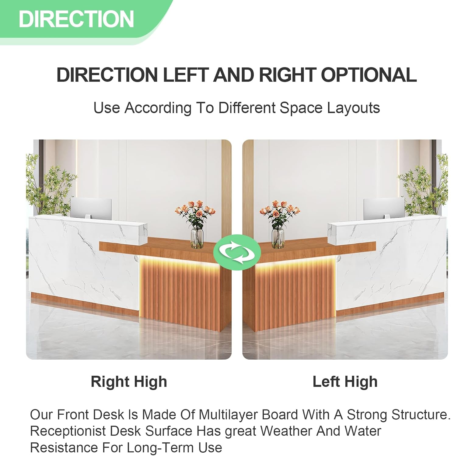 - Wide Use - The multifunctional reception room tables office reception desks cashier desk has a simple appearance and is suitable for various occasions, such as office, beauty salon, lobby, shop, small business, restaurant, clinic or other places.