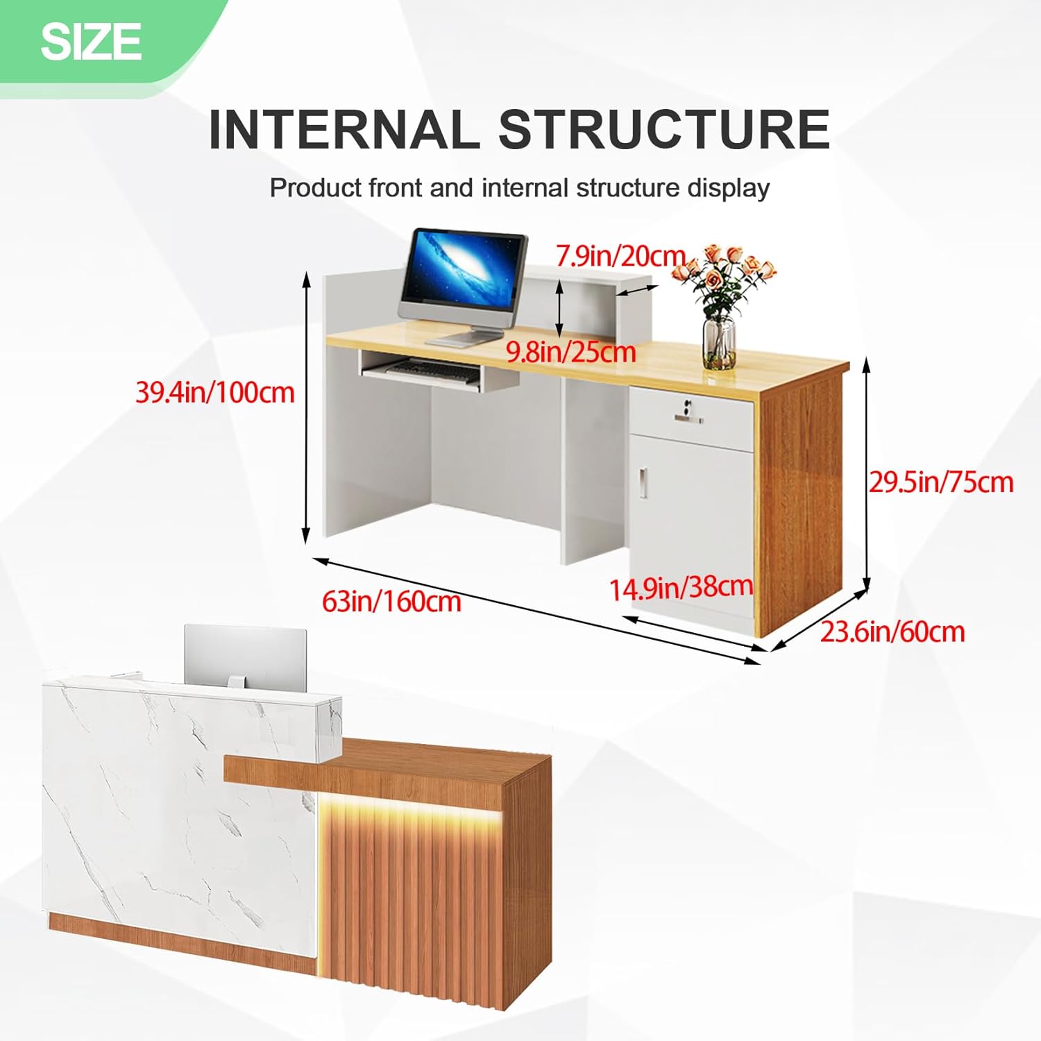- Privacy Design - We attach great importance to your privacy and property security. The receptionist desk with counter retail counter checkout is equipped with lockable drawer, cabinet with door and high baffle, providing ample space for privacy.