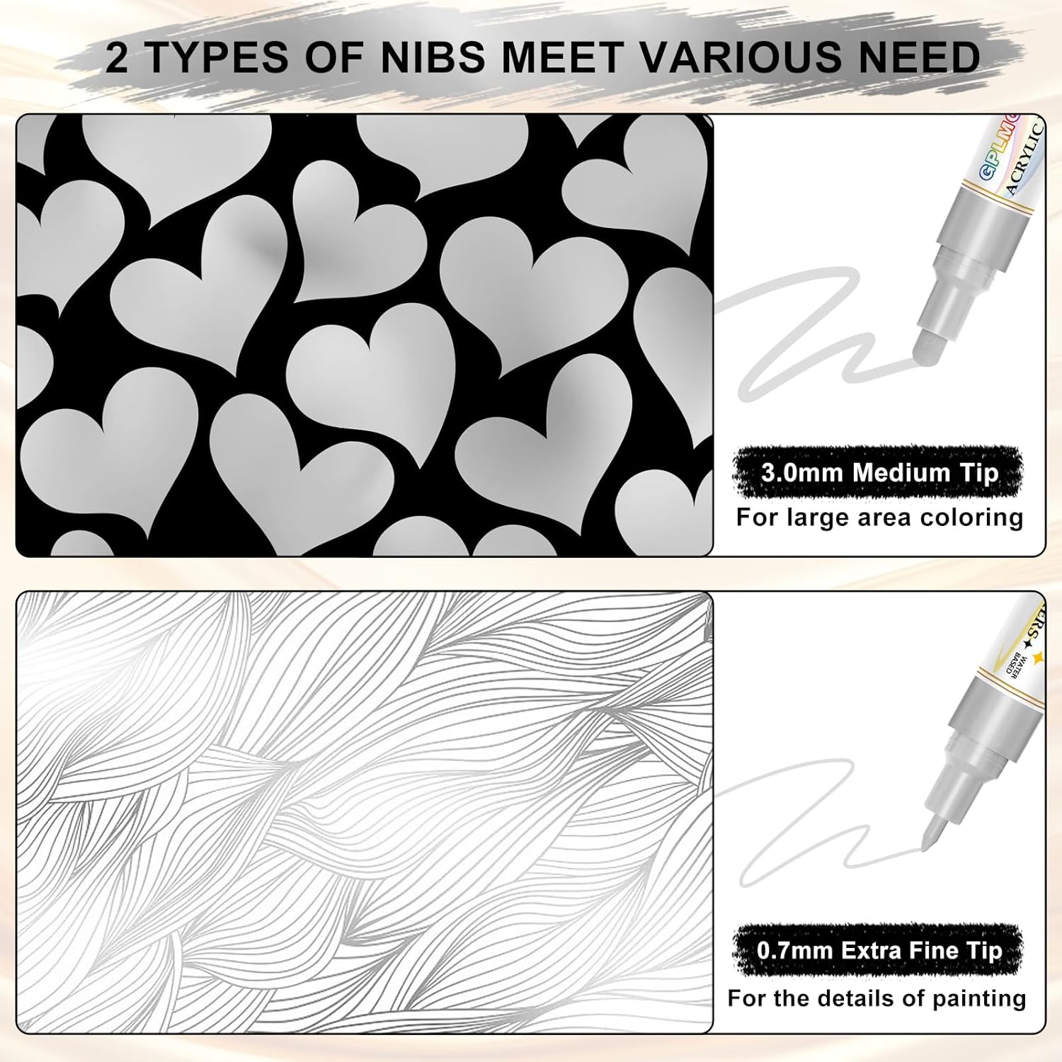 - Dual-Tip Design for Versatility: Each paint pen features a 0.7mm fine tip for detailed lines and a 3mm medium tip for filling larger areas, making it perfect for outlining, lettering, and adding intricate details to your DIY projects