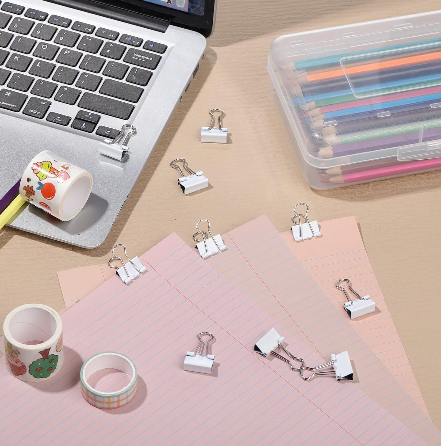 Jetec 100 Pack 0. 75in/19mm White Metal Binder Clips Bulk Medium Reusable Fold Back Binder Clips Paper Clamps Spring Steel Sturdy for Home Office School Supplies