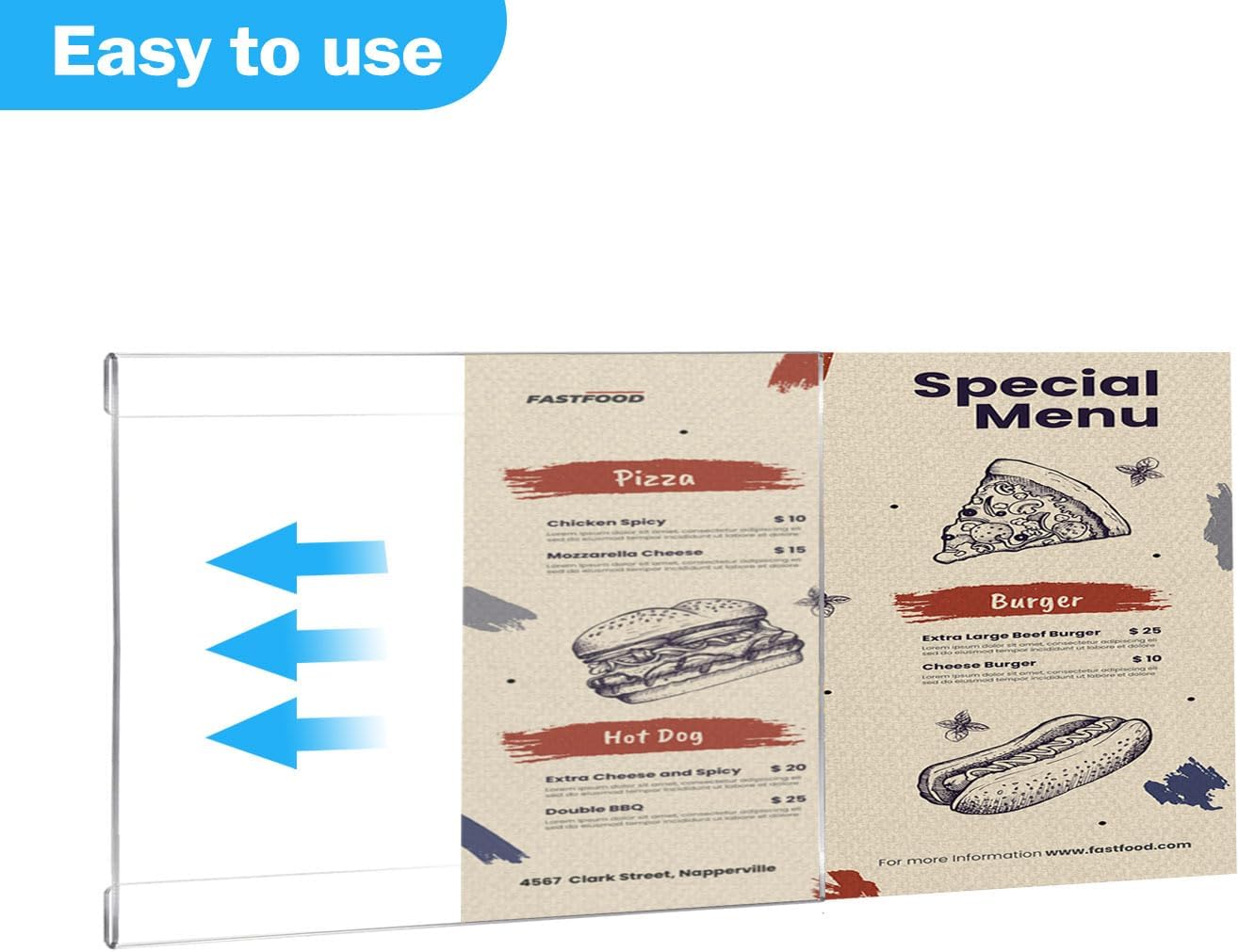 - 【Widely Used】This clear plastic holder offers a very high transparency and clarity, and it is not easy to turn yellow. This can clearly and accurately display the information in any 8.5 x 11 inches poster, photo or sign. It had been widely used in business, offices, churches, hospitals, schools, and more document displayed inside the holder.