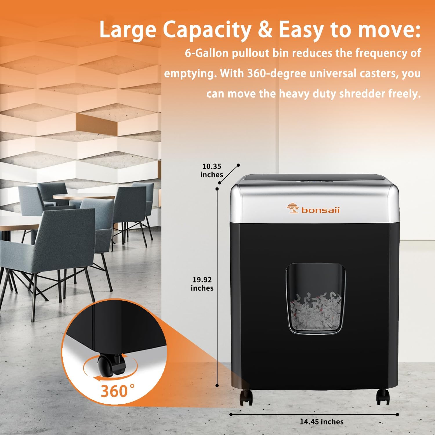 Bonsaii Heavy-Duty Paper Shredder for Home & Office - 110-Sheet Autofeed, Micro Cut, P-4 Security Level, 30-Minute Continuous Shred, 6-Gallon Bin