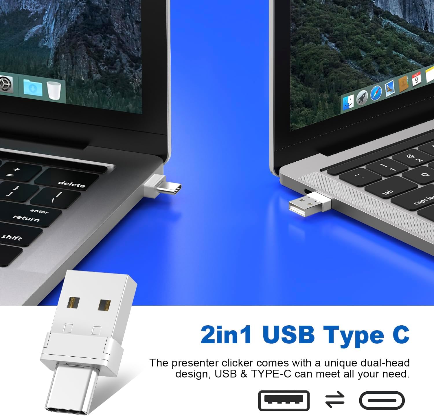QUI Presentation Clicker Wireless Presenter Remote Clicker for PowerPoint Presentation Remote, PowerPoint Slide Advancer for Mac/Windows/Linux, Google Slide/PPT/Keynote, Type-c, Silver