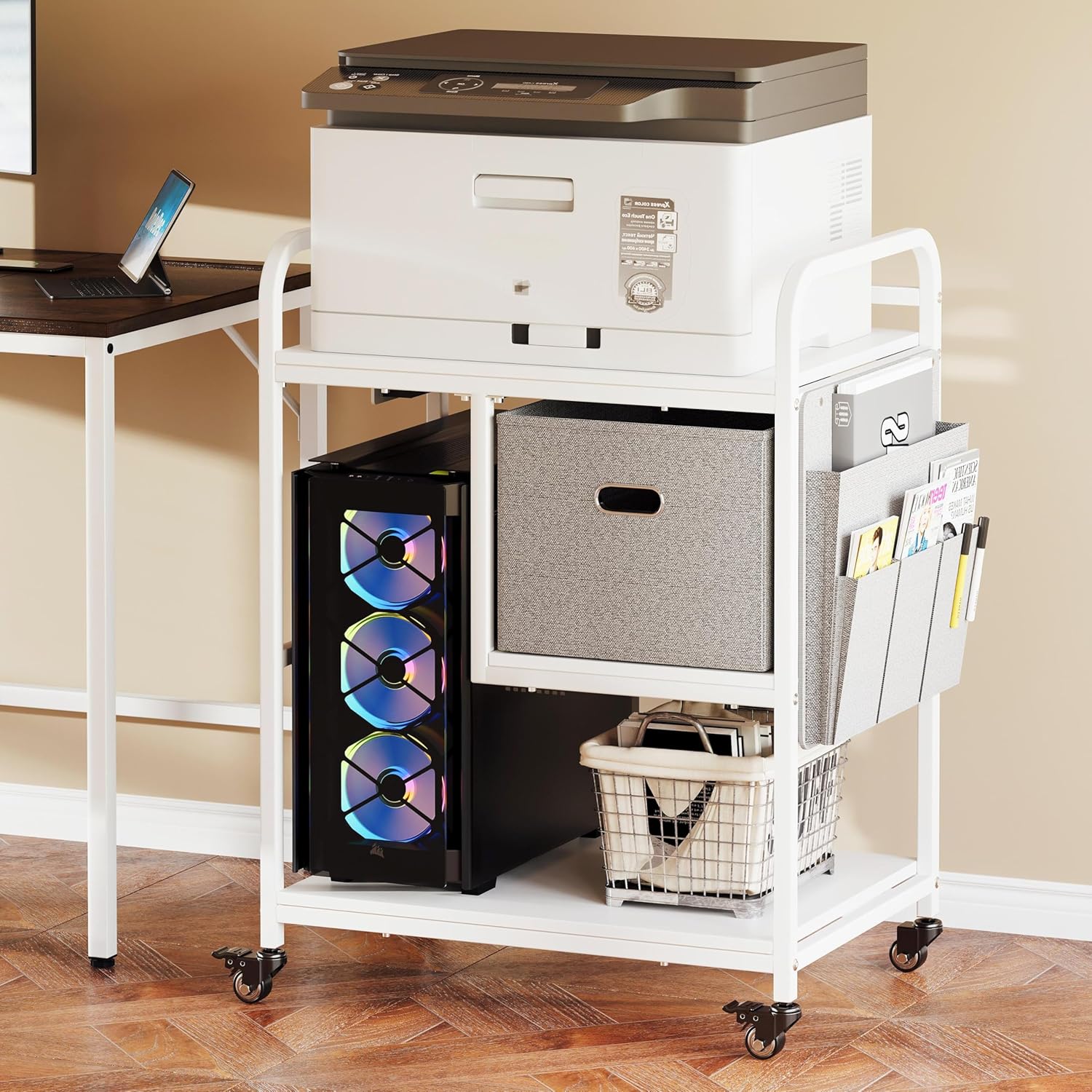 - 𝗩𝗲𝗿𝘀𝗮𝘁𝗶𝗹𝗲 𝗨𝘀𝗲: This multifunctional printer cart is designed to serve in various settings. It’s not just a printer stand with wheels for your office—it can double as a bedside table in your bedroom, a stylish plant stand in the living room, or even a storage unit in the kitchen. Whatever your space, this stand is a perfect fit.