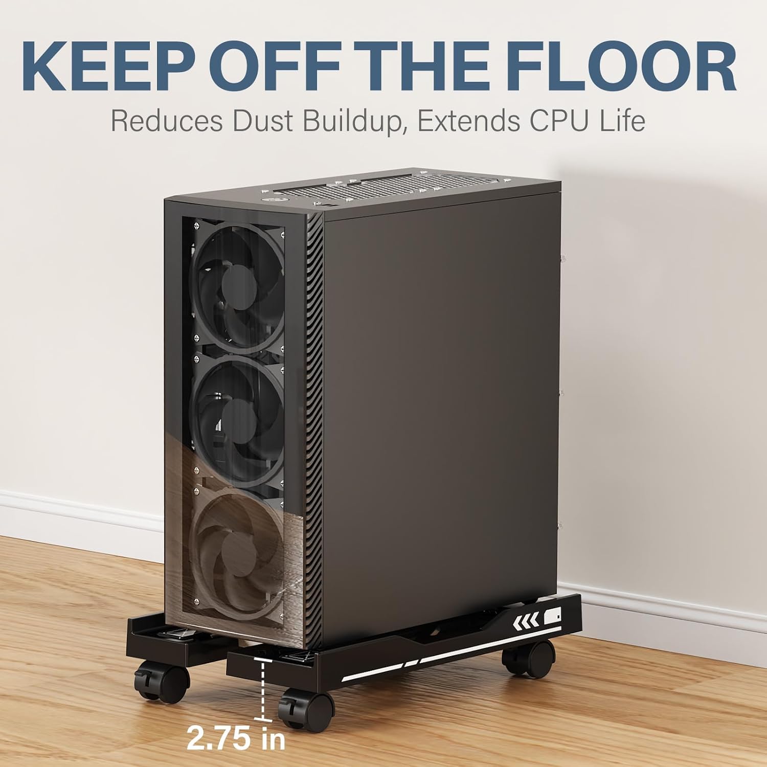 - Ventilation and Cooling: pc tower stand with wheels and holes at the bottom to keep the tower off the ground, enhance the cooling at the bottom and around to keep it clean and ventilated, greatly protects your computer tower