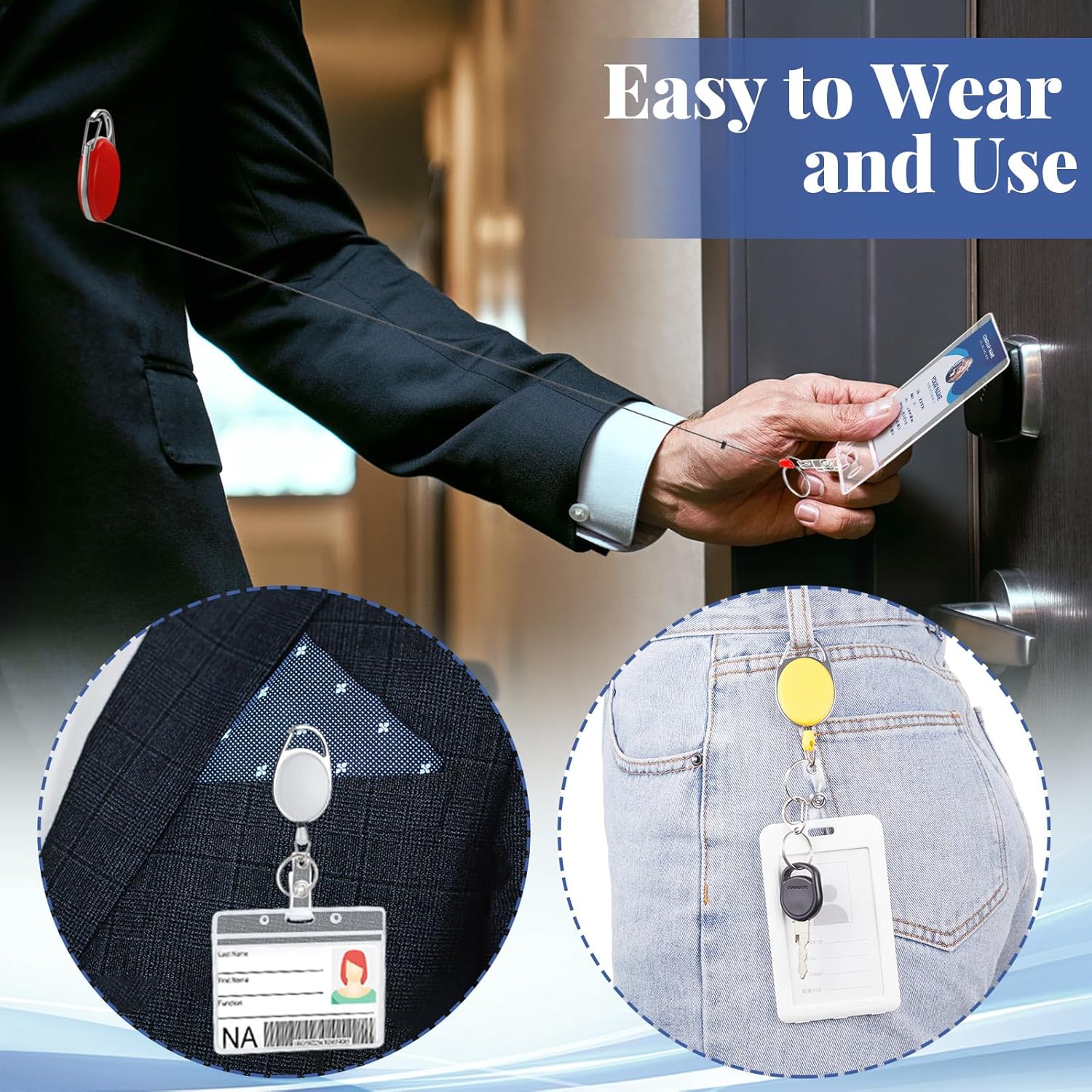 - Package Includes: you will get 90 packs of retractable badge clips, featuring plastic covers, keychain, retractable reel clip for fastening to belt loops, straps, backpacks, bags effortlessly and quickly, allow a quick and easy way to scan or swipe your badge