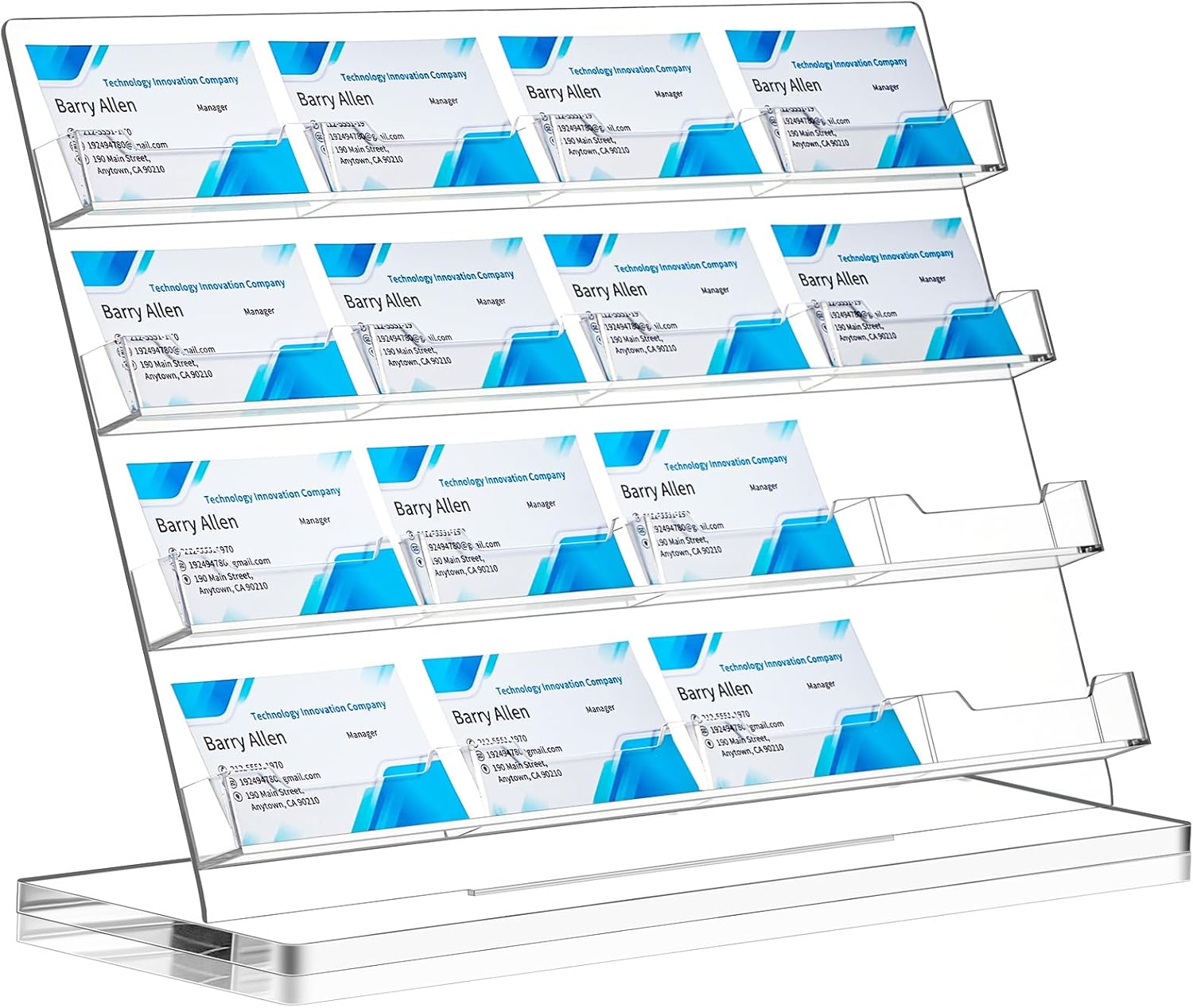 - Intuitive Structure: our business card holder for desks features 4 tiered and 16 slot design, which helps in maximizing space utilization; The slanted angle offers easy display of your business cards, ensuring that they remain unobstructed and easily accessible; This convenient design satisfies your immediate business card needs, allowing you to focus on your core tasks