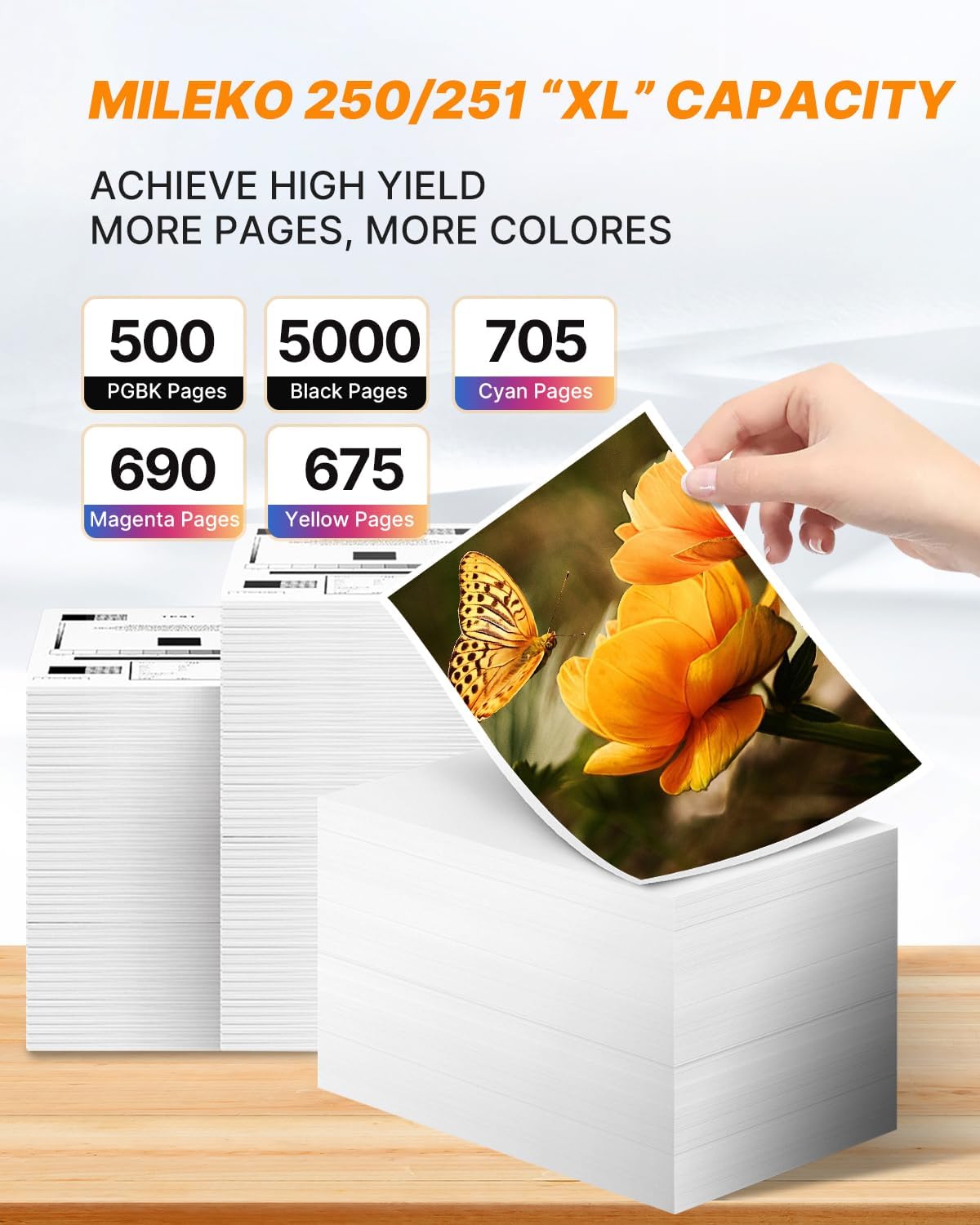 - 3.Page Yield: Up to 5000 pages for per 251XL black ink cartridge, 500 pages for Per PGI-250XL 250XL PGBK Ink Cartridges, 675 pages per for 251xl ink cartridges for canon printers ( Cyan Magenta Yellow Ink Cartridges)