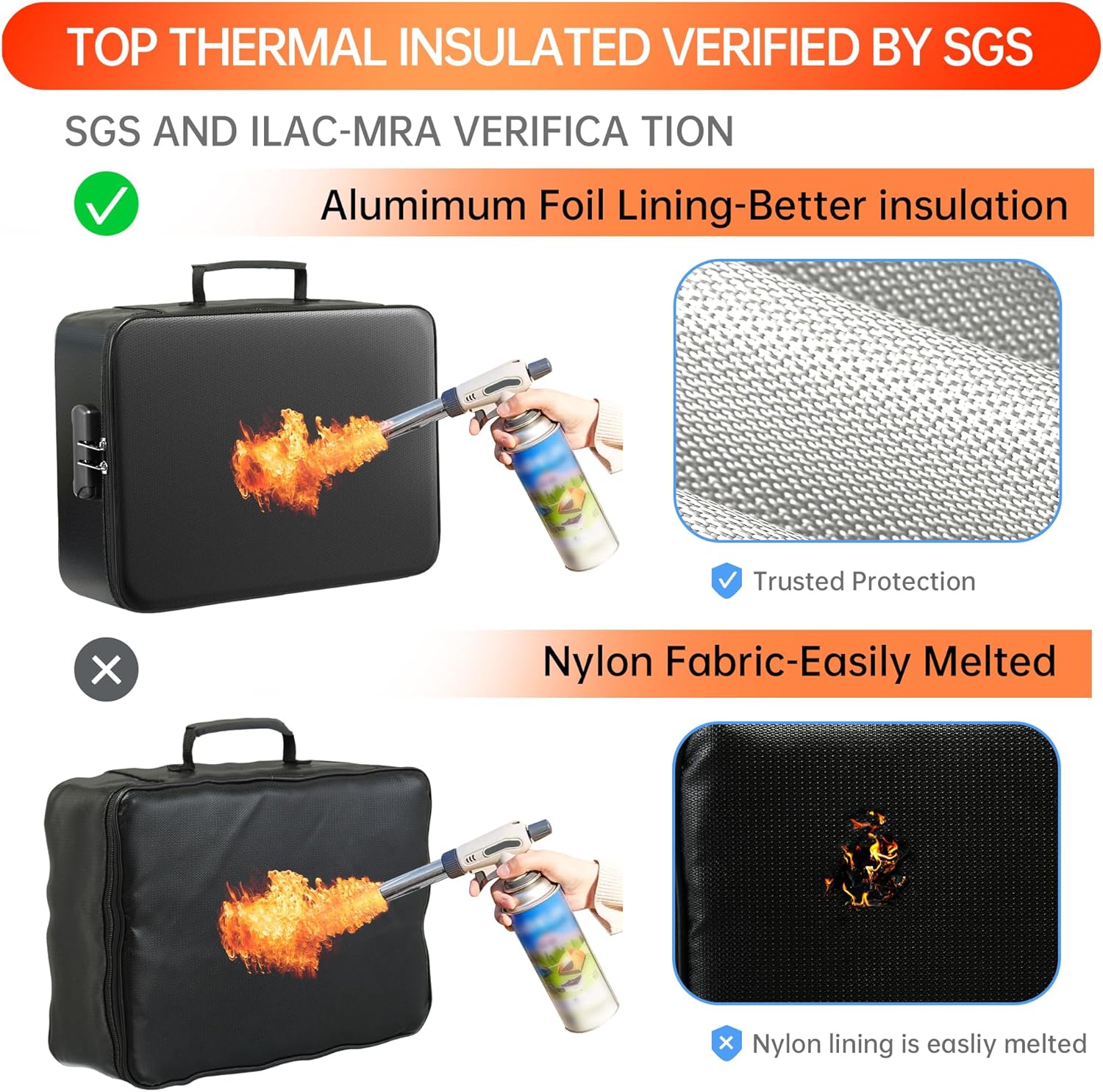 - 【Innovative Humanized Design】Design with a strong handle for carrying everything you needed easily.Not only can you put it in your home, office, car,storage cabinet, you can also take it to camping, travel and various outdoor activities. Of course, giving it as a Christmas gift to your family, customers or employees is also a good choice.The newly designed fireproof bag is lighter,easier to carry than a fireproof safe