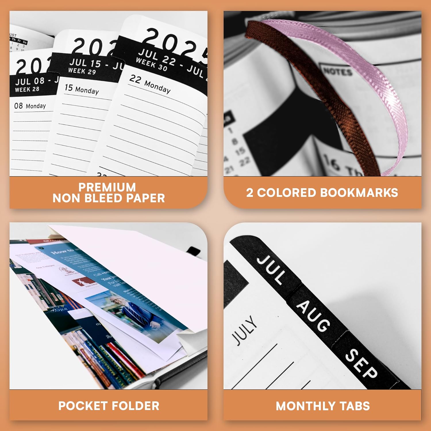 - ๐๐จ๐ก๐๐ง๐๐ข๐ก๐๐ ๐๐๐ง๐๐๐๐ฆ - 6.5" x 8.5" Weekly & Monthly Pages | Leather Cover | Round Corners | Elastic Closure Band | 100 GSM Thick Paper | Ink Resistant Paper | Planner Section | Weekly to do Section | Notes Section | Holidays | World Map | Bookmarking Ribbons | Pen Holder | Reference Calendars