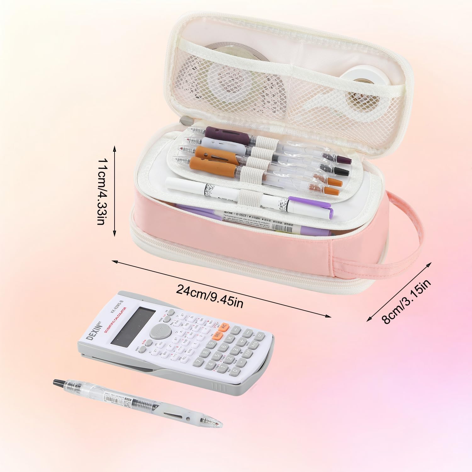 Pencil Case Large Zipper Pencil Pouch for Girls Kids Teens Adults Aesthetic Pencil Bag Stationery Organizer Pencil Case with Handle for School Pink