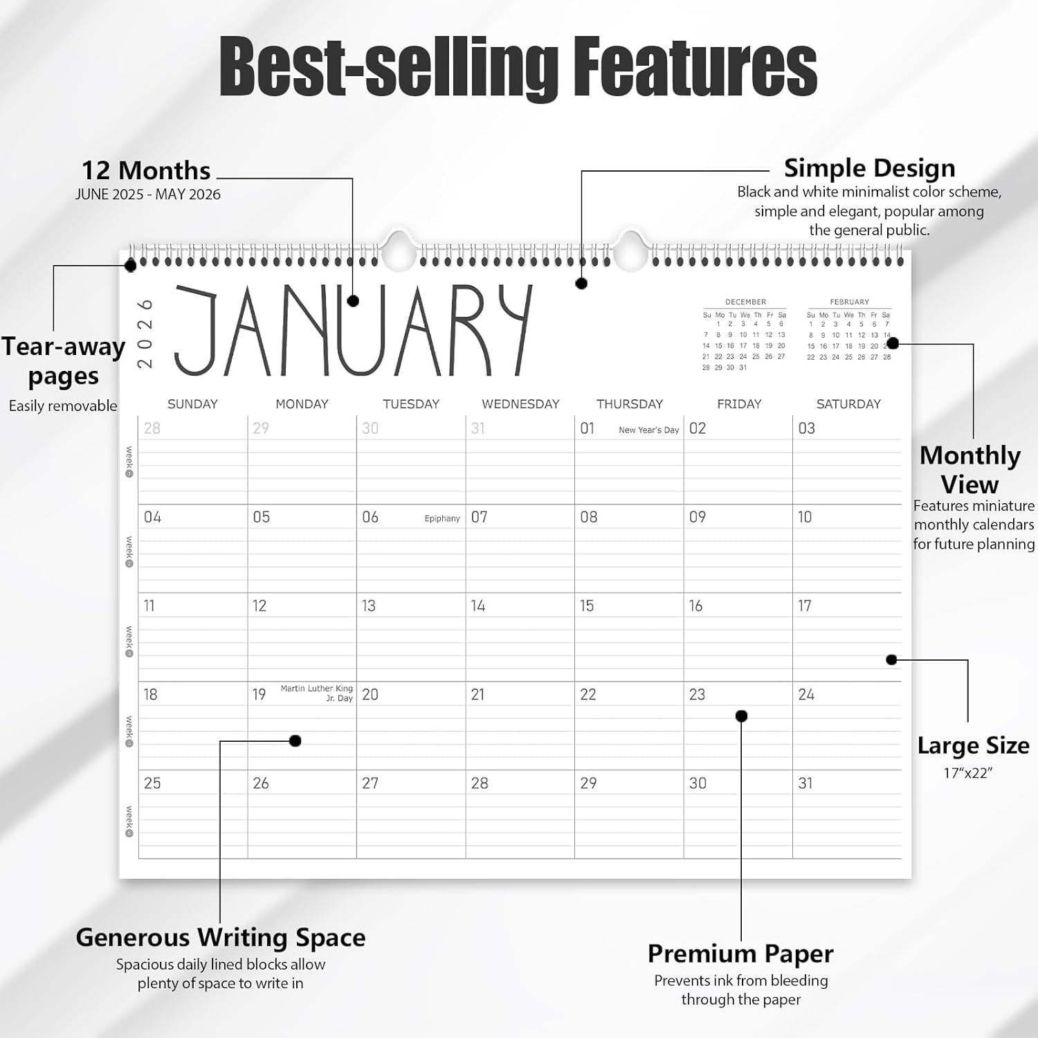 - Extra-Large Format for Easy Planning:Stay organized throughout the year with our large wall calendar 2025-2026, spanning from June 2025 to May 2026. Measuring 22" x 17", this oversized format is perfect for hanging or desktop use. It’s the ideal 12-month hanging calendar for students, professionals, and families alike