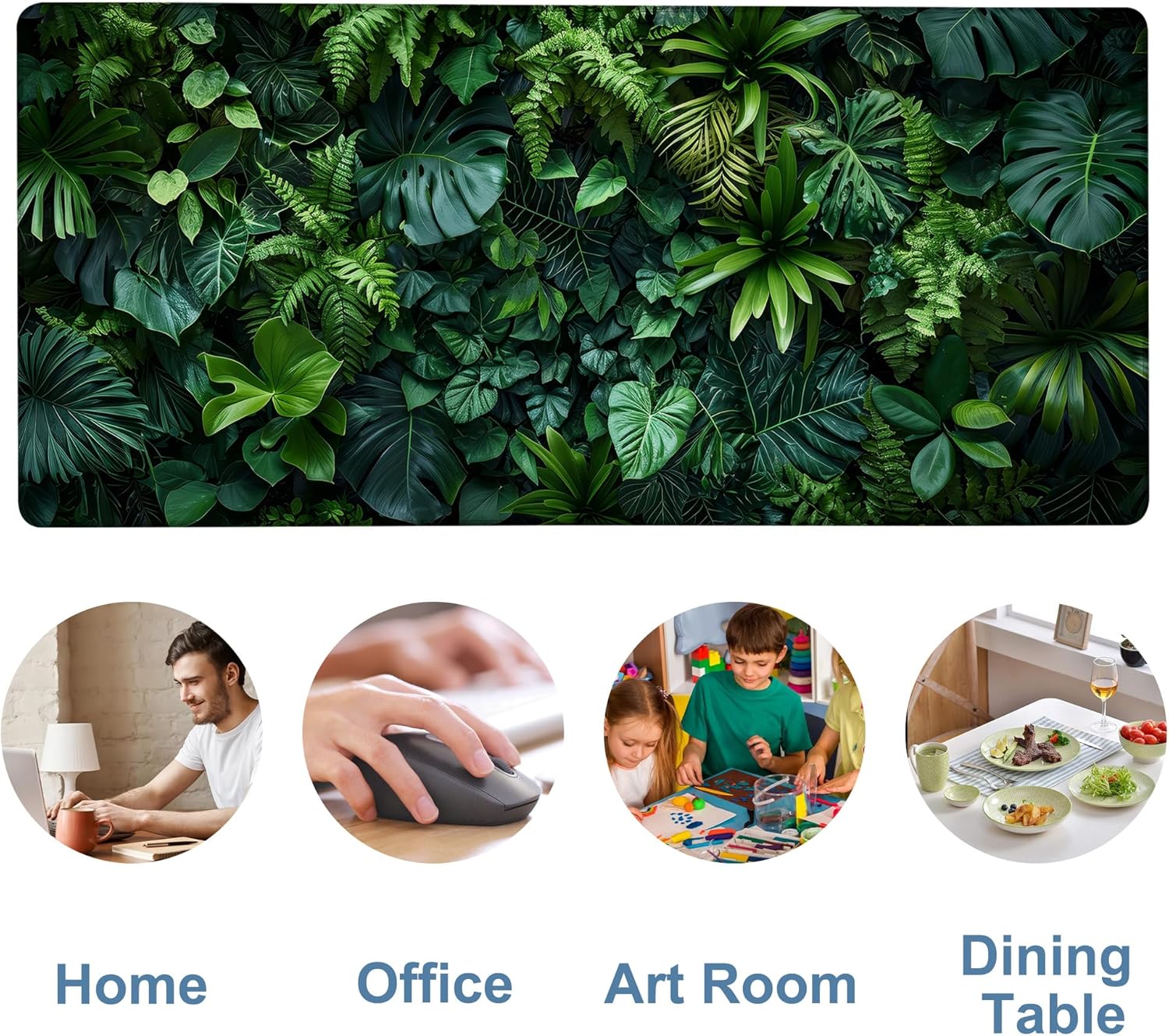 Large Mouse Pad Monstera Leaf Gaming Desk Pad Computer Keyboard Non-Slip Waterproof Mouse Mat with Rubber Base and Stitched Edges Entertainment Office Writing Desk Mat 35.4 x 15.7 Inches