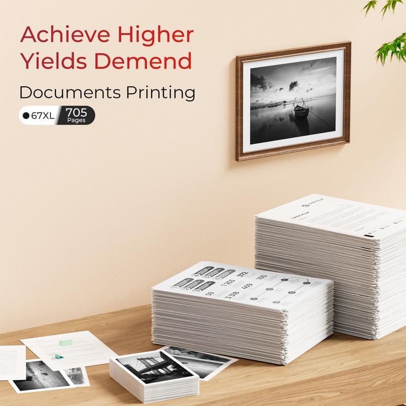 - High Yield: Up to 705 pages per for hp 67xl black ink cartridge at 5% coverage (A4 paper size)
