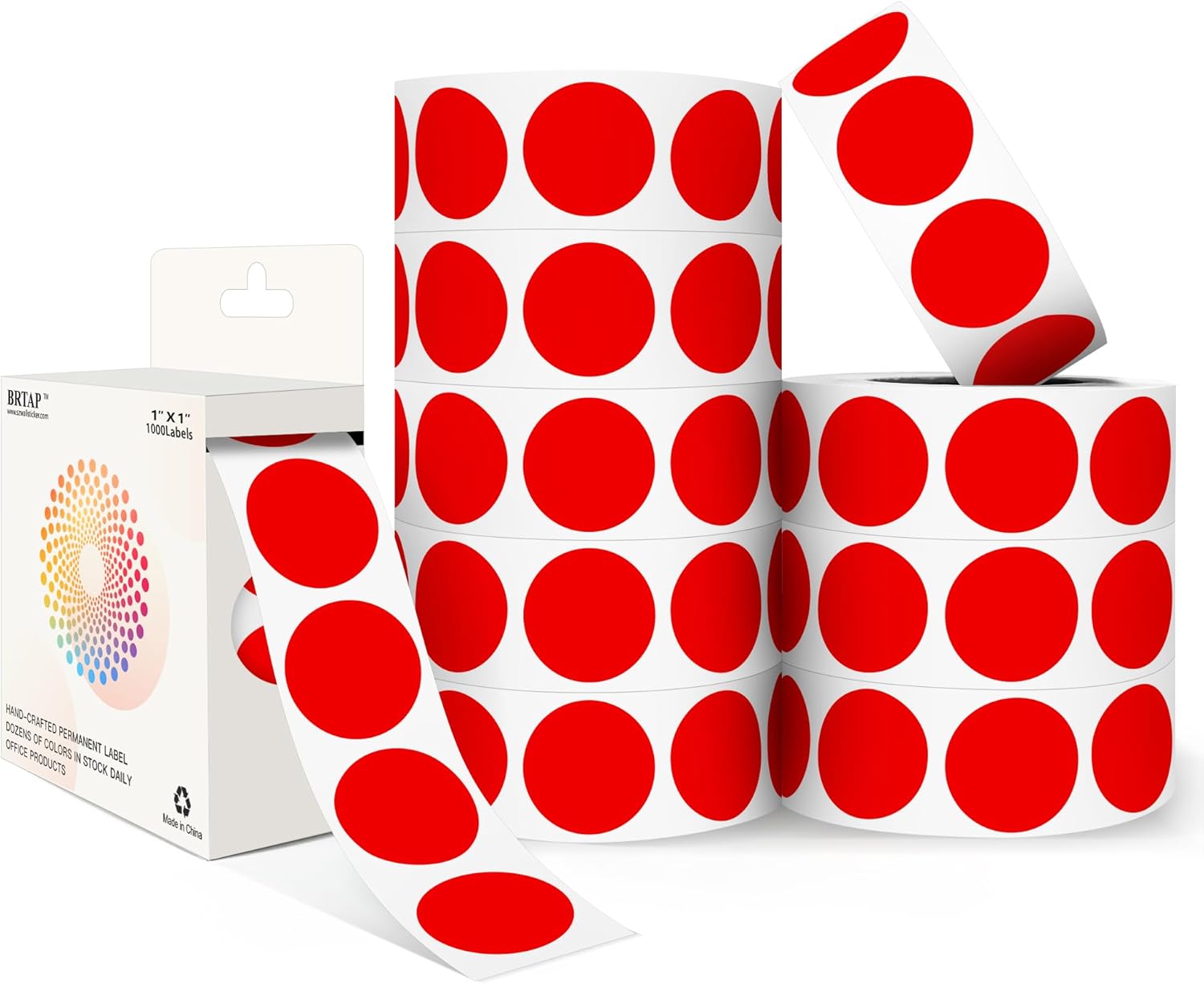 Red 1 Inch Round Color Coding Dot Labels, 10 Rolls 10000 Dot Stickers in Dispenser Box - Permanent Adhesion, Vibrant Colors, Highly Visible