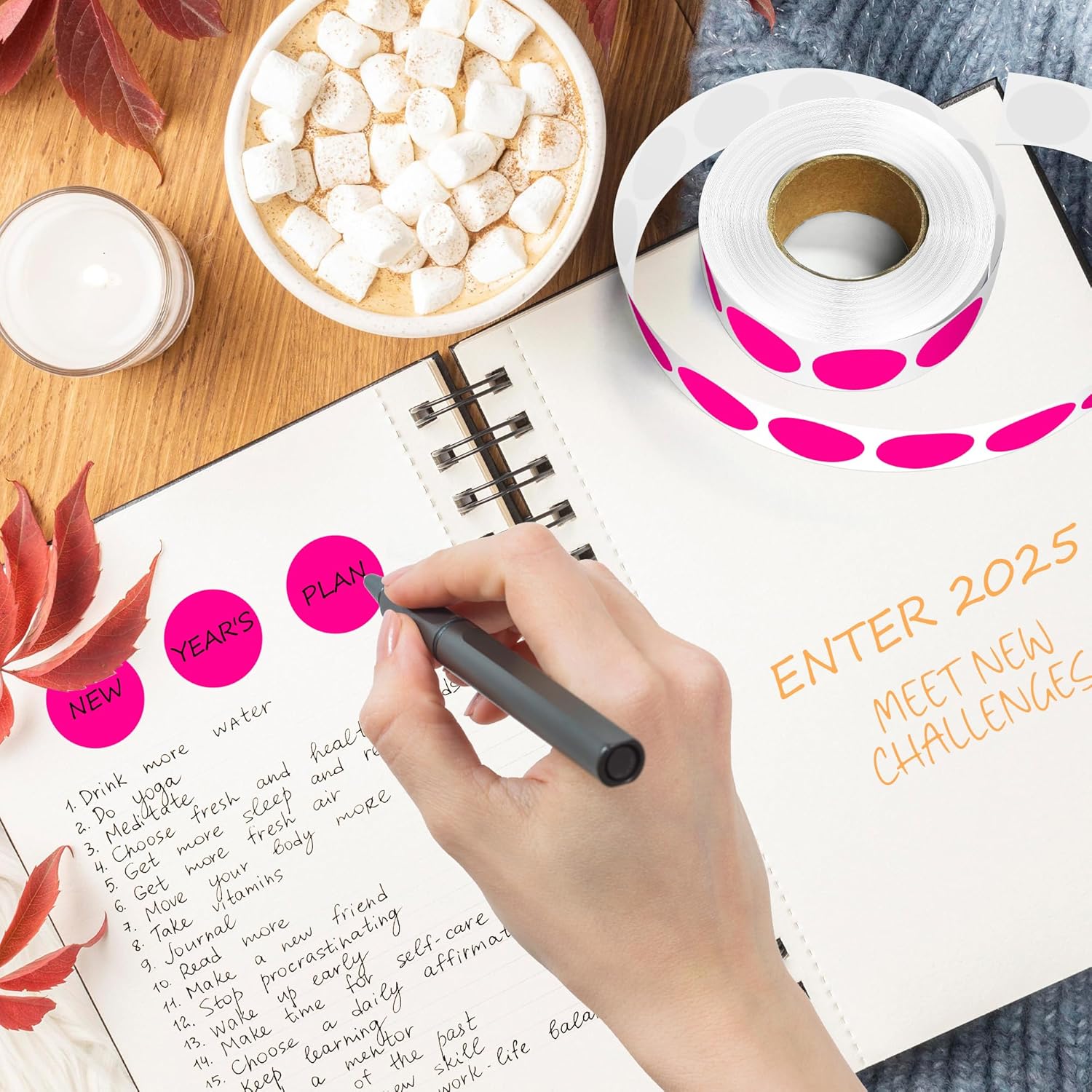 Fluorescent Pink 1 Inch Round Color Coding Dot Labels, 10 Rolls 10000 Dot Stickers in Dispenser Box - Permanent Adhesion, Vibrant Colors, Highly Visible