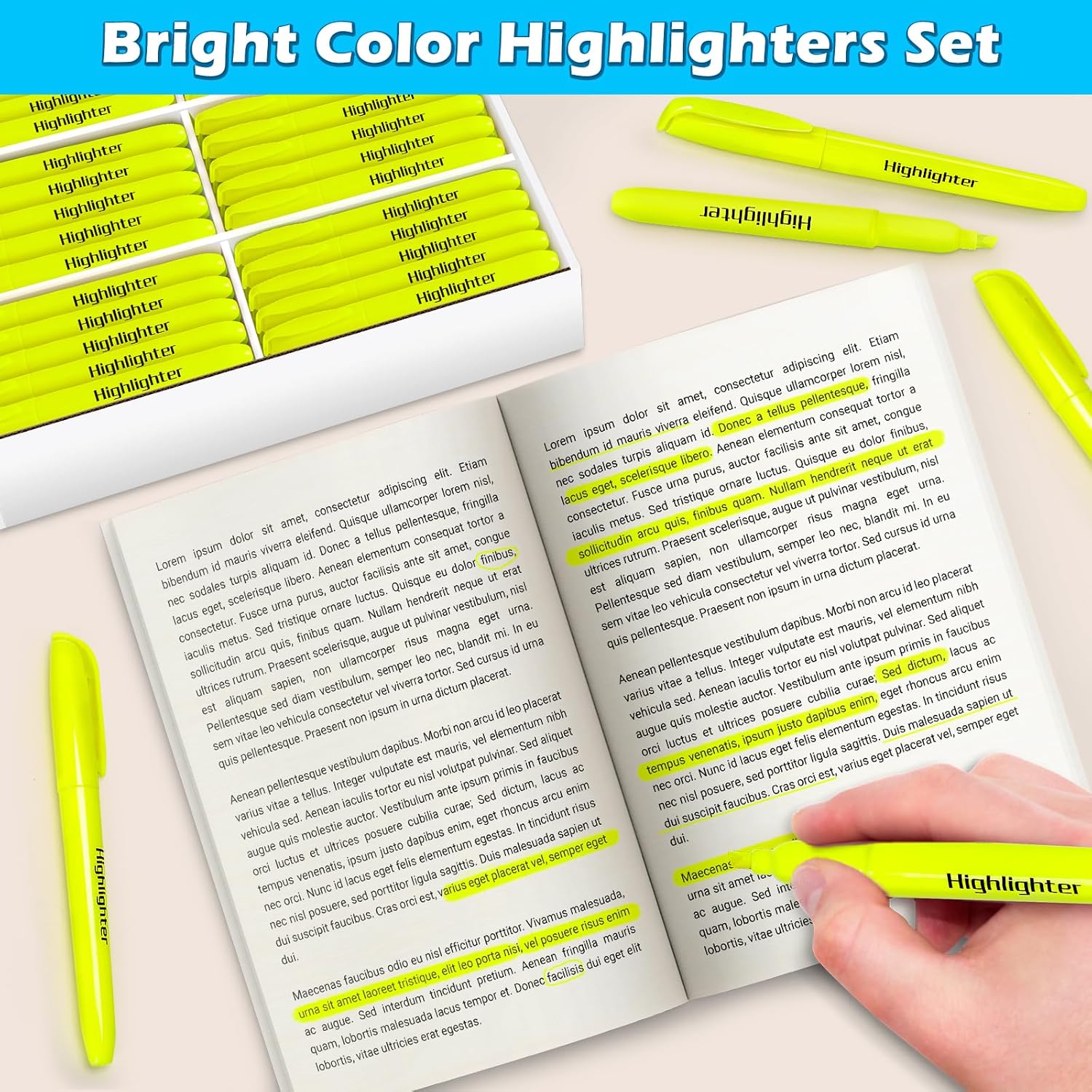 - Yellow Highlighter Sets: 108 Count highlighters bulk to help you classify different topics or concepts.Perfect for color coding and highlighting favorite book passages or notes. If you are looking for smooth, pretty, light fluorescent yellow highlighters, then these will not disappoint.