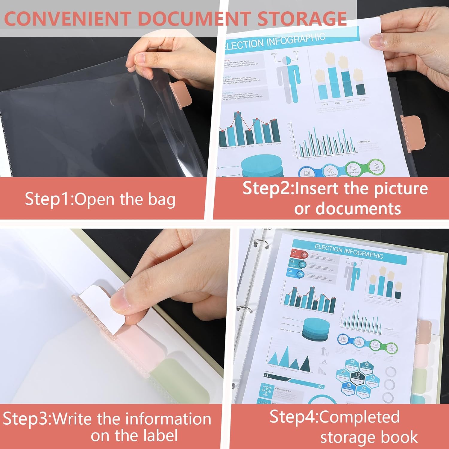 - High-quality material for longevity: Made from durable PP material, these tabbed dividers are lightweight, waterproof, tear-resistant, and reusable. The wide opening design allows for easy insertion of documents, keeping all your important papers in one place without the hassle of searching through piles of loose sheets.