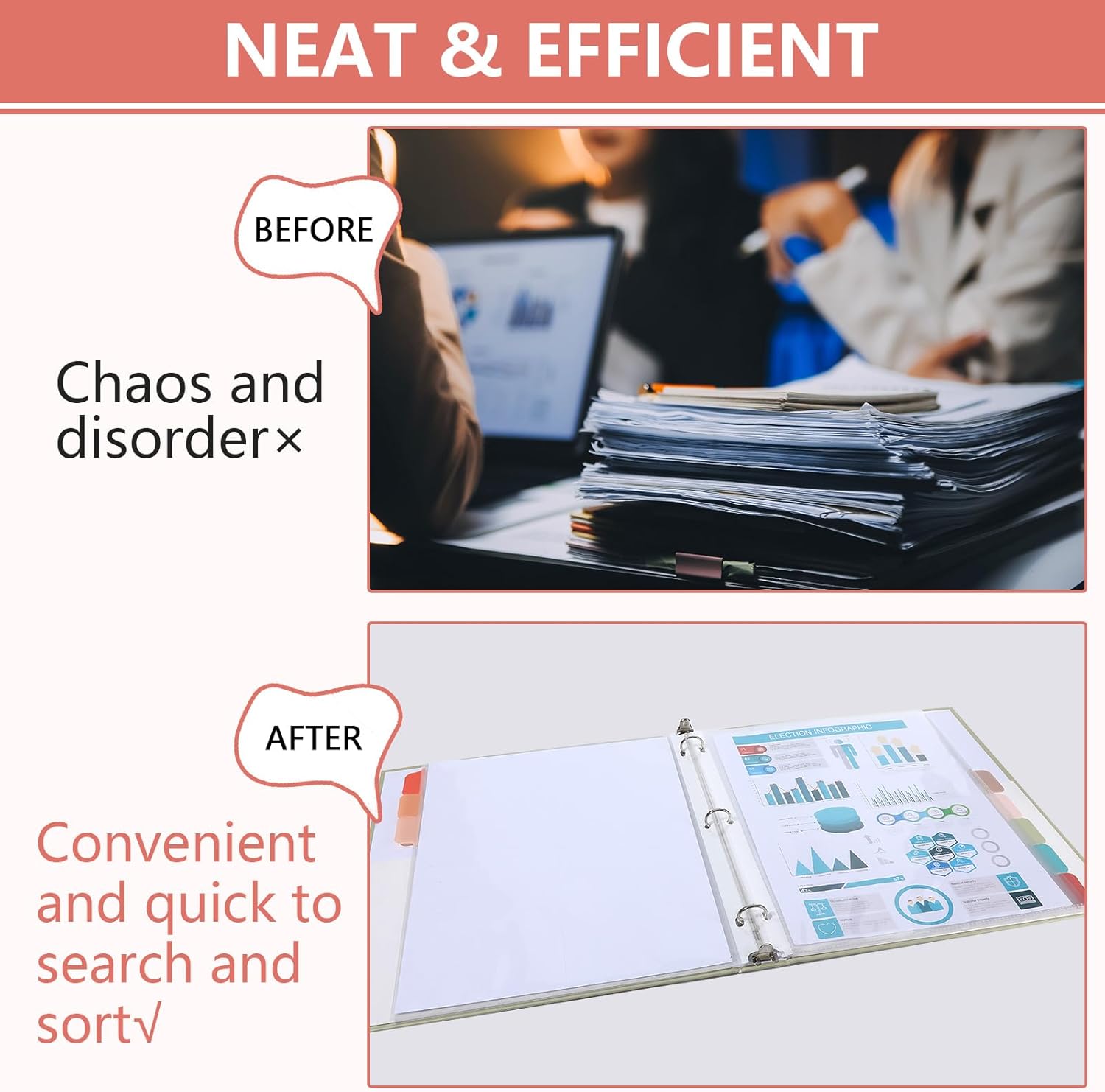 - Colorful index tabs for easy organization: Each set comes with 8 different colored index tabs, allowing you to categorize and quickly locate sections within your documents. The transparent page protectors provide clear visibility, ensuring you can find information at a glance.