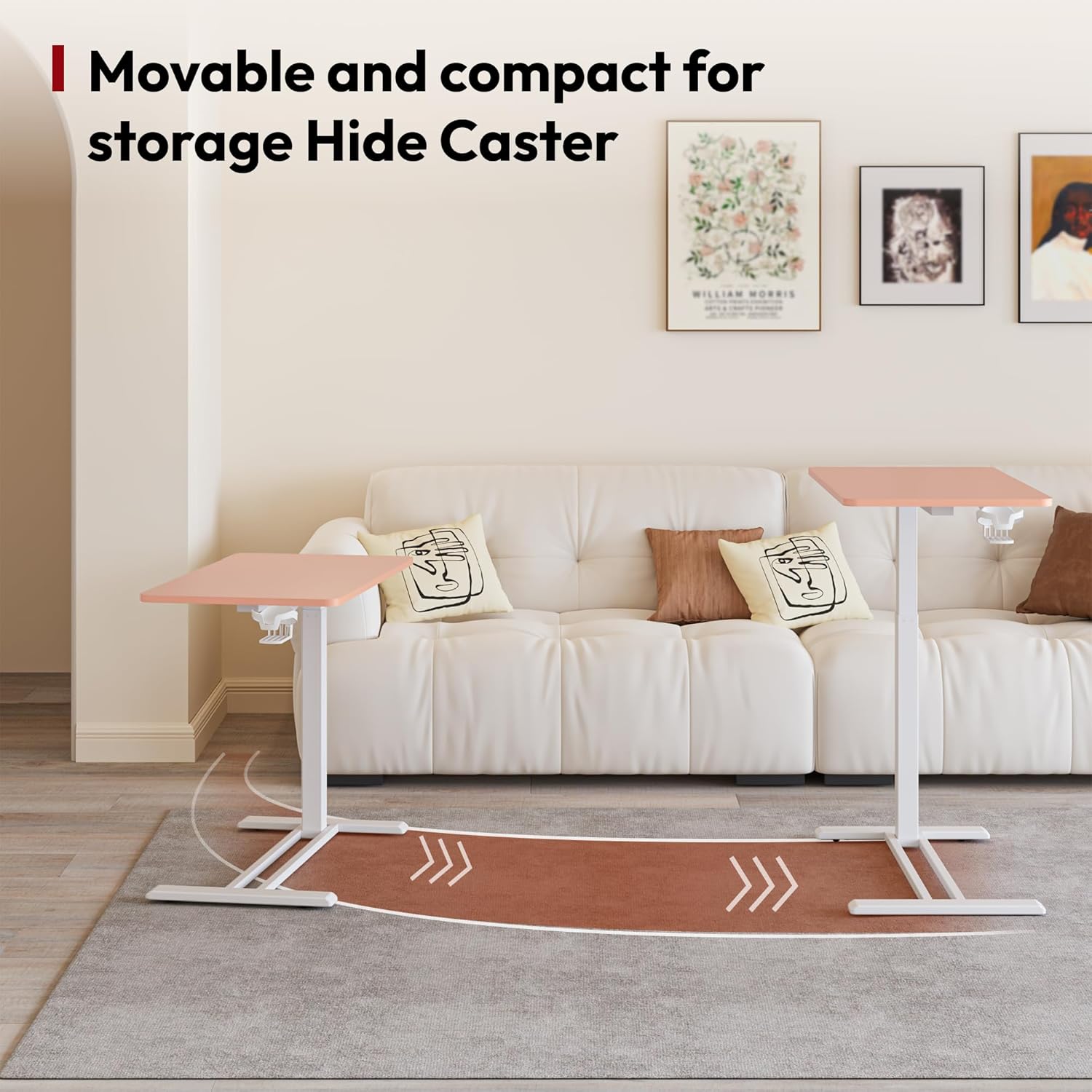 - Portable and Mobile – Designed for convenience, this rolling computer desk is ideal for work or study, whether at home or in the hospital. Its low-profile base with smooth-rolling wheels allows easy movement and tucks under furniture as low as 1.2 inches, saving space and enhancing adaptability.