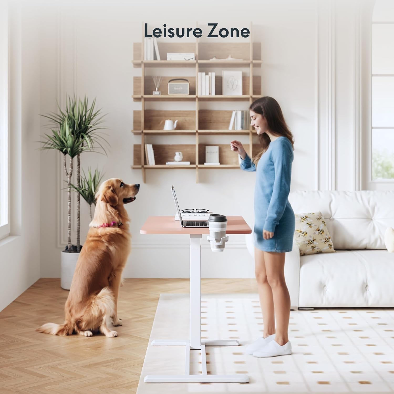 - Gas Spring Pneumatic Lift System : The sit and stand desk built-in gas spring offers smooth one-hand height adjustment from 26" to 41.7". No need to bend down or use force to adjust the height.