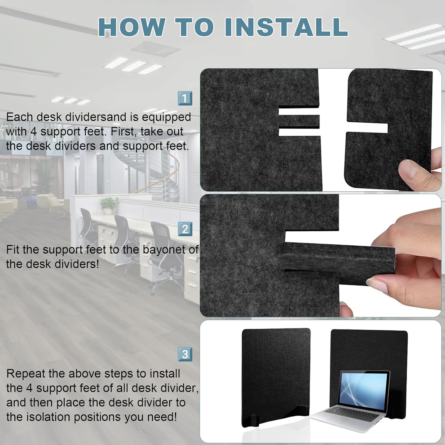 - 【Quality Material and Easy to Assemble】This desk partition board is made of felt, which is sturdy and durable, not easy to deform, can effectively separate you from the person next to you, and has a long service life, so you can rest assured of its use. With original snap-on legs design, installation is completed in 3 seconds and disassembly is equally convenient.Used to fix the desktop partition for students firmly on the table or desk, easy to install, save time and effort,you will soon enjoy your own cubicle.