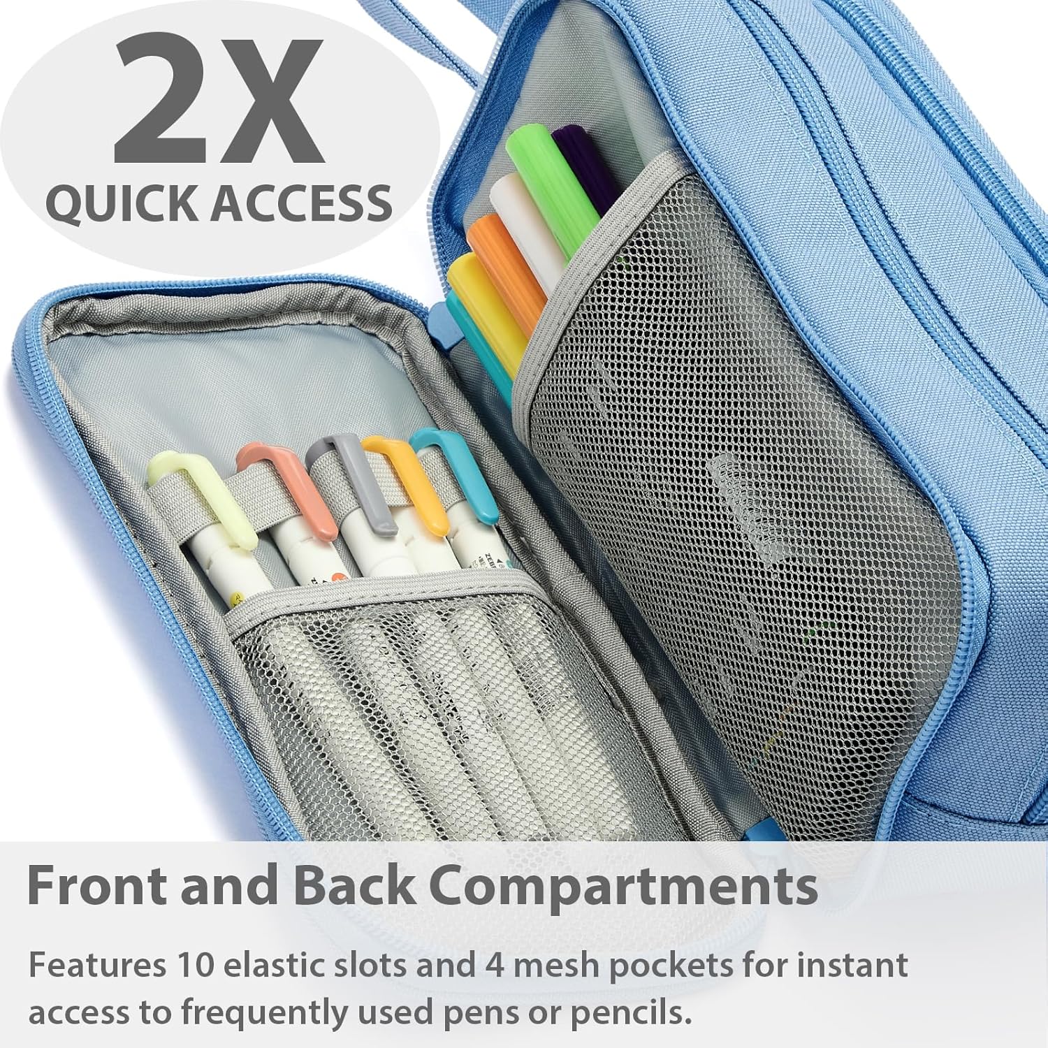Pencil Case Pouch Box Bag School Supplies Girls Boys Kids, Cute Preppy Stuff Big Capacity Aesthetic Pen Organizer, Back to College Stationary, Cornflower Blue, Extra Large Style, 2300ml